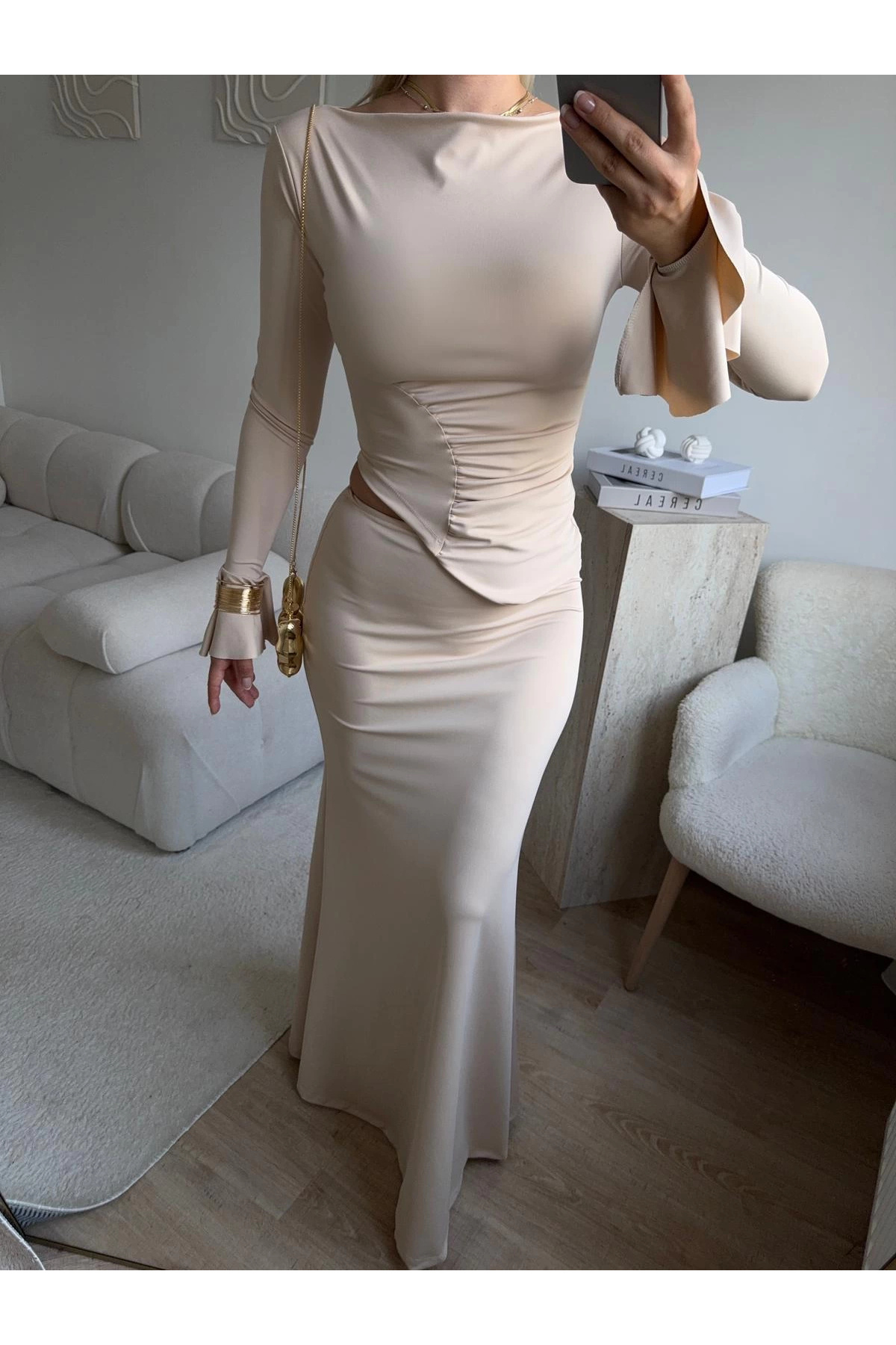 Büzgü Detay Fırfırlı İkili Takım - BEJ Büzgü Detay Fırfırlı İkili Takım - BEJ P3985S5509 L