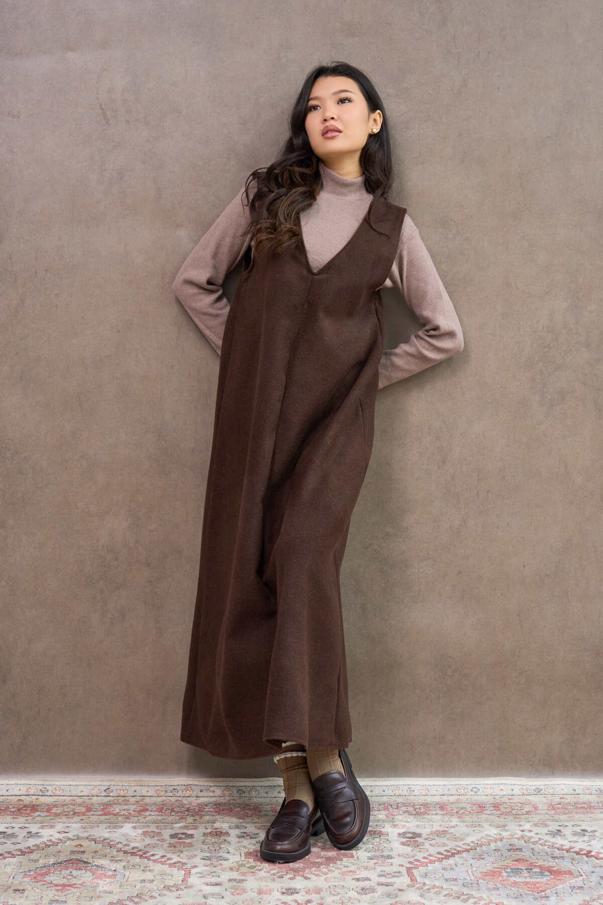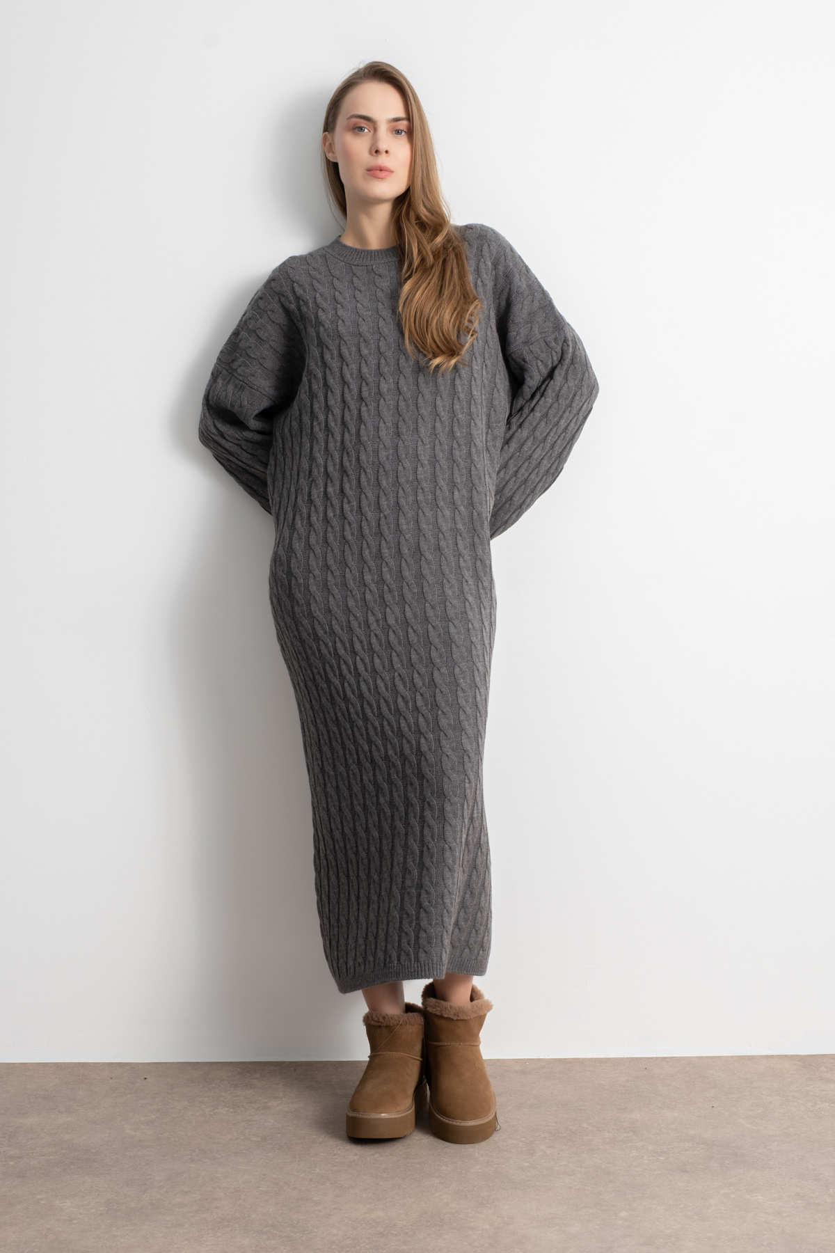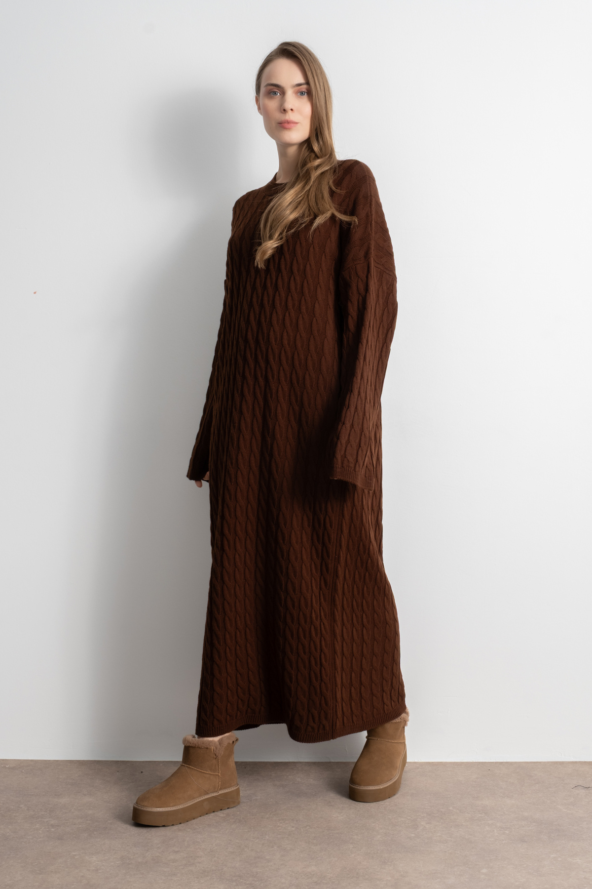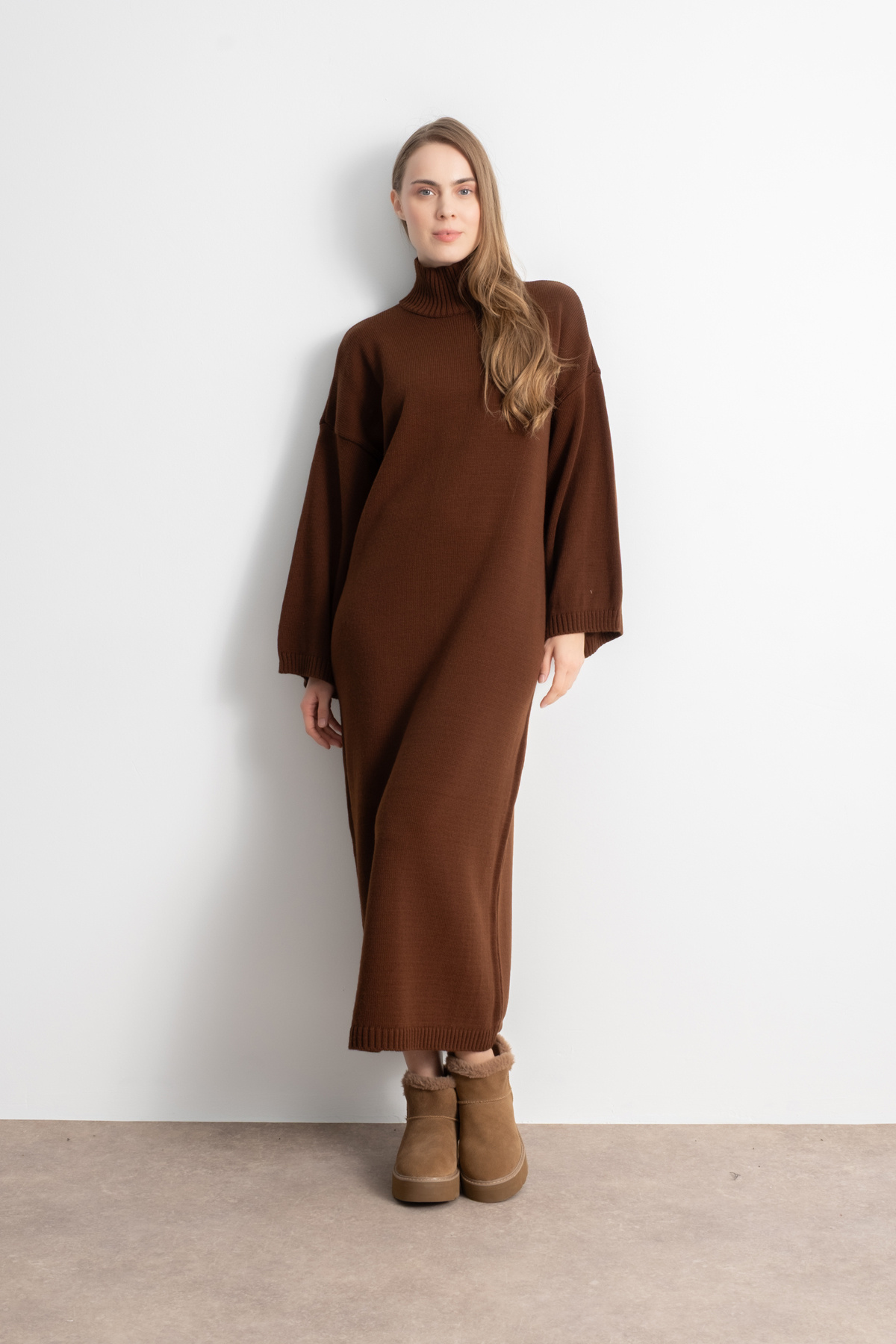 Kadın Boğazlı Oversize Triko Elbise – Kahve Kadın Boğazlı Oversize Triko Elbise – Kahve MR202551 Standart