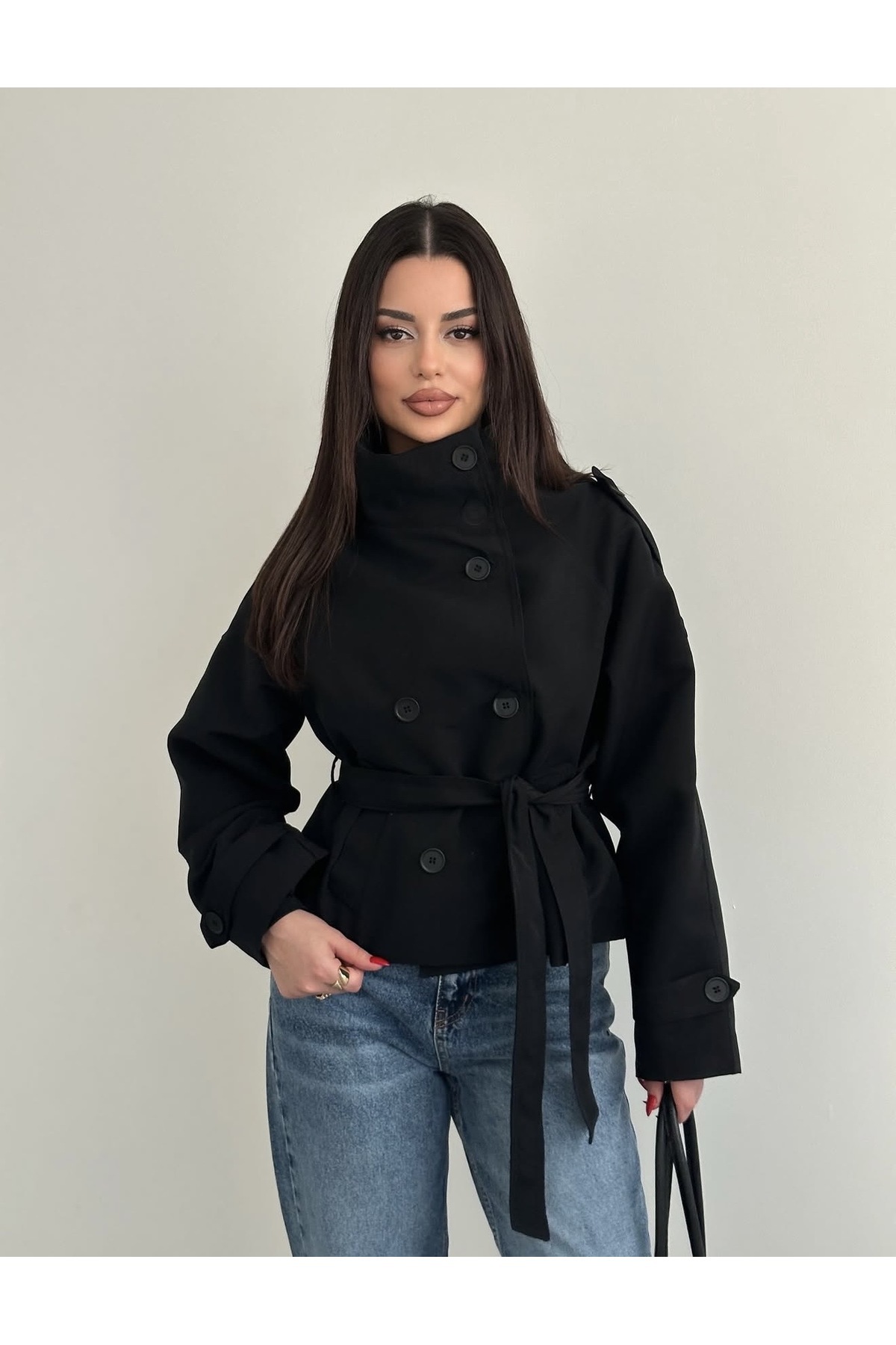 Kısa Oversize Kaşe Kruvaze Kaban Ceket Kadın Mont Kısa Oversize Kaşe Kruvaze Kaban Ceket Kadın Mont KRVZCKT3500 42