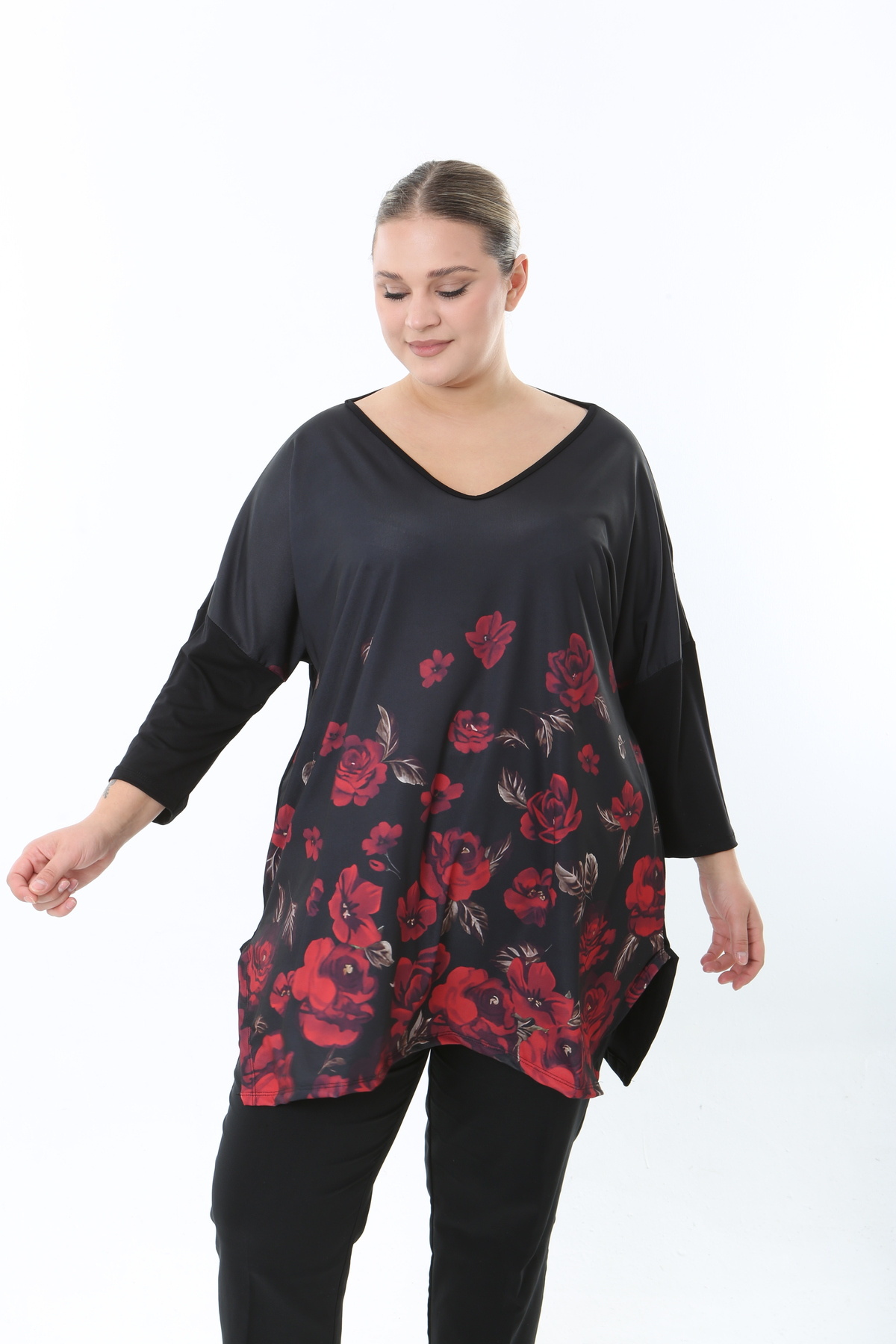 likralı viskon dijital baskılı fakir kol büyük beden tunik likralı viskon dijital baskılı fakir kol büyük beden tunik H10569 58-60