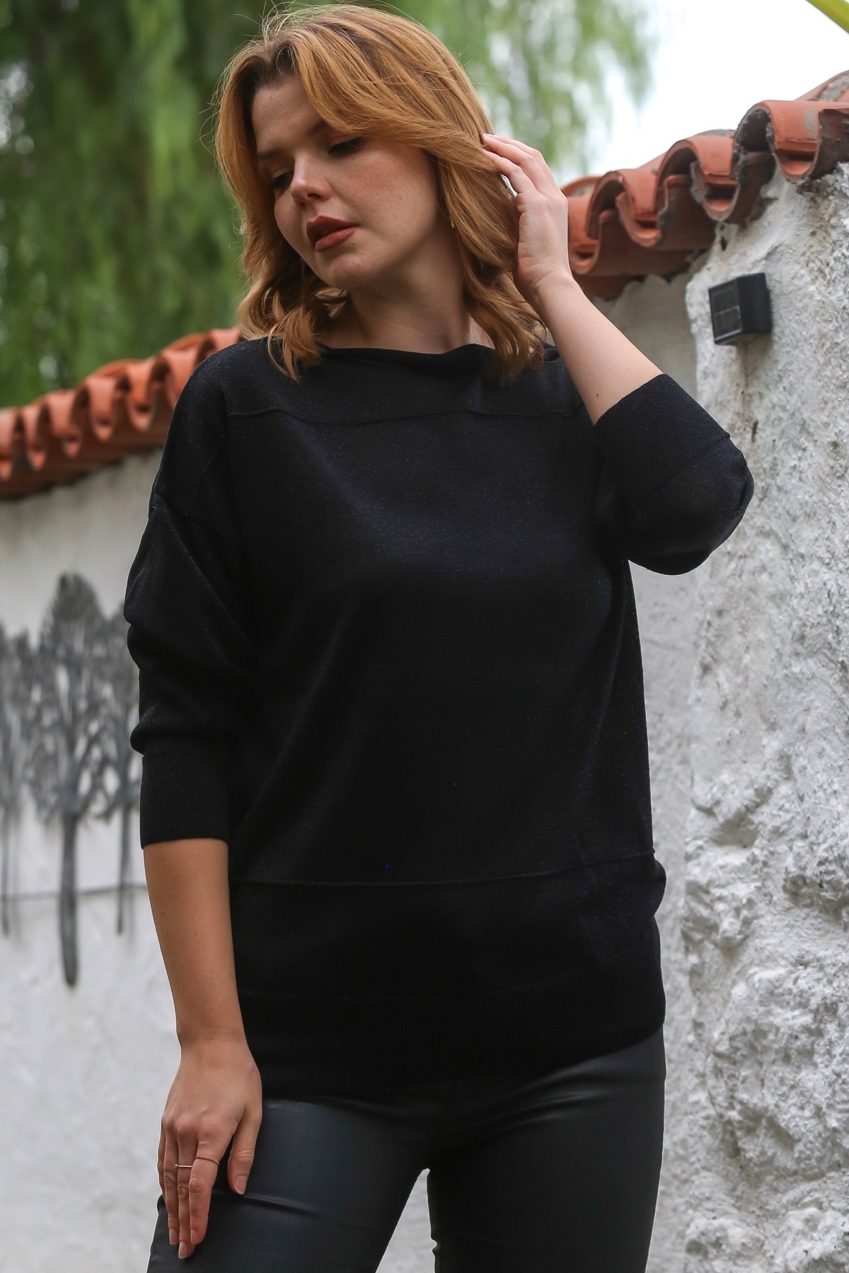 Siyah Kayık Yaka Yarasa Kol İnce Boncuklu Triko Bluz 70 70 Siyah Kayık Yaka Yarasa Kol İnce Boncuklu Triko Bluz 70 70 M10010200BL91148 Standart
