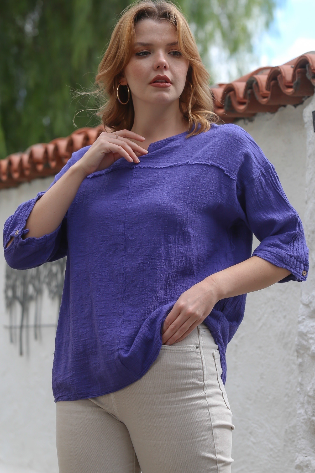 Açık Mor Yuvarlak Yaka 3/4 Kol Yıkamalı Pamuklu Dokuma Bluz 60 62 Açık Mor Yuvarlak Yaka 3/4 Kol Yıkamalı Pamuklu Dokuma Bluz 60 62 M10010200BL91142 XL