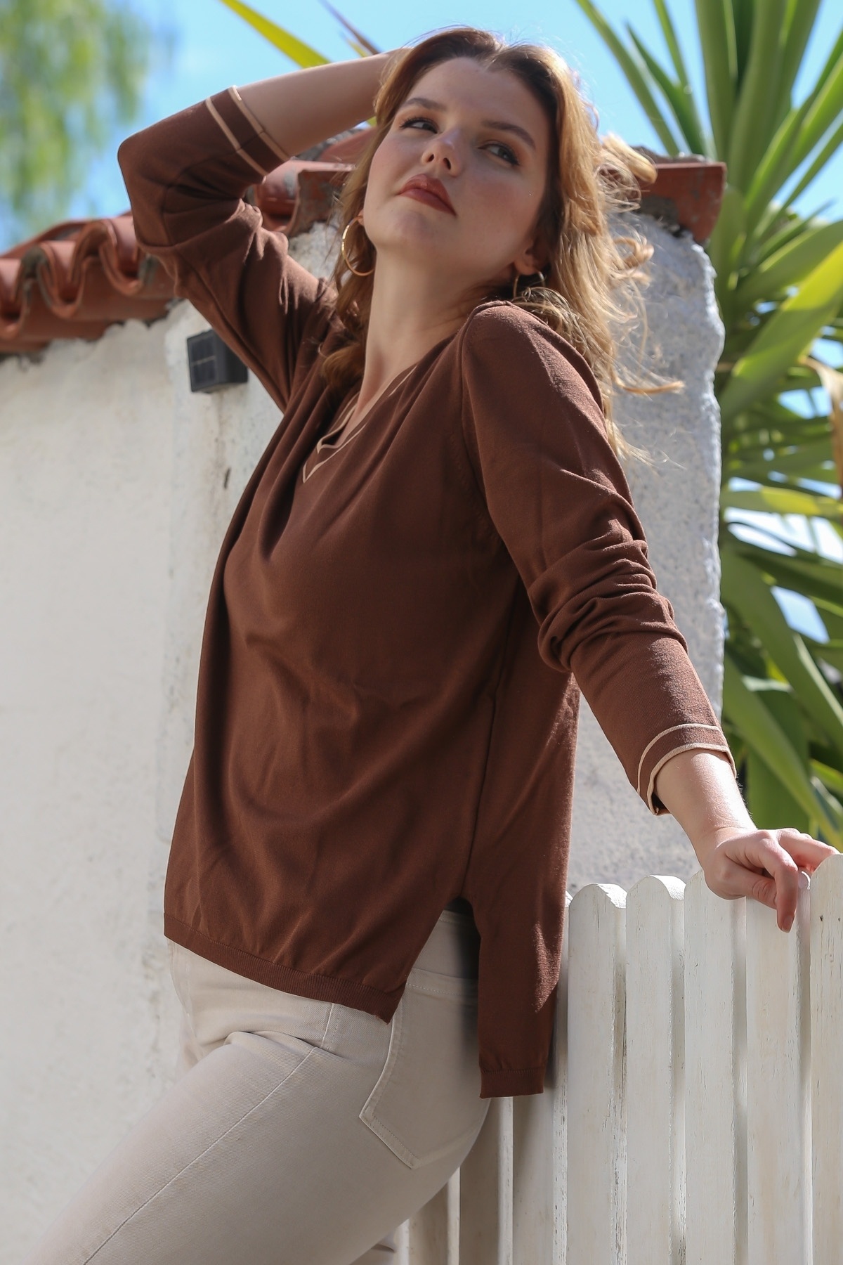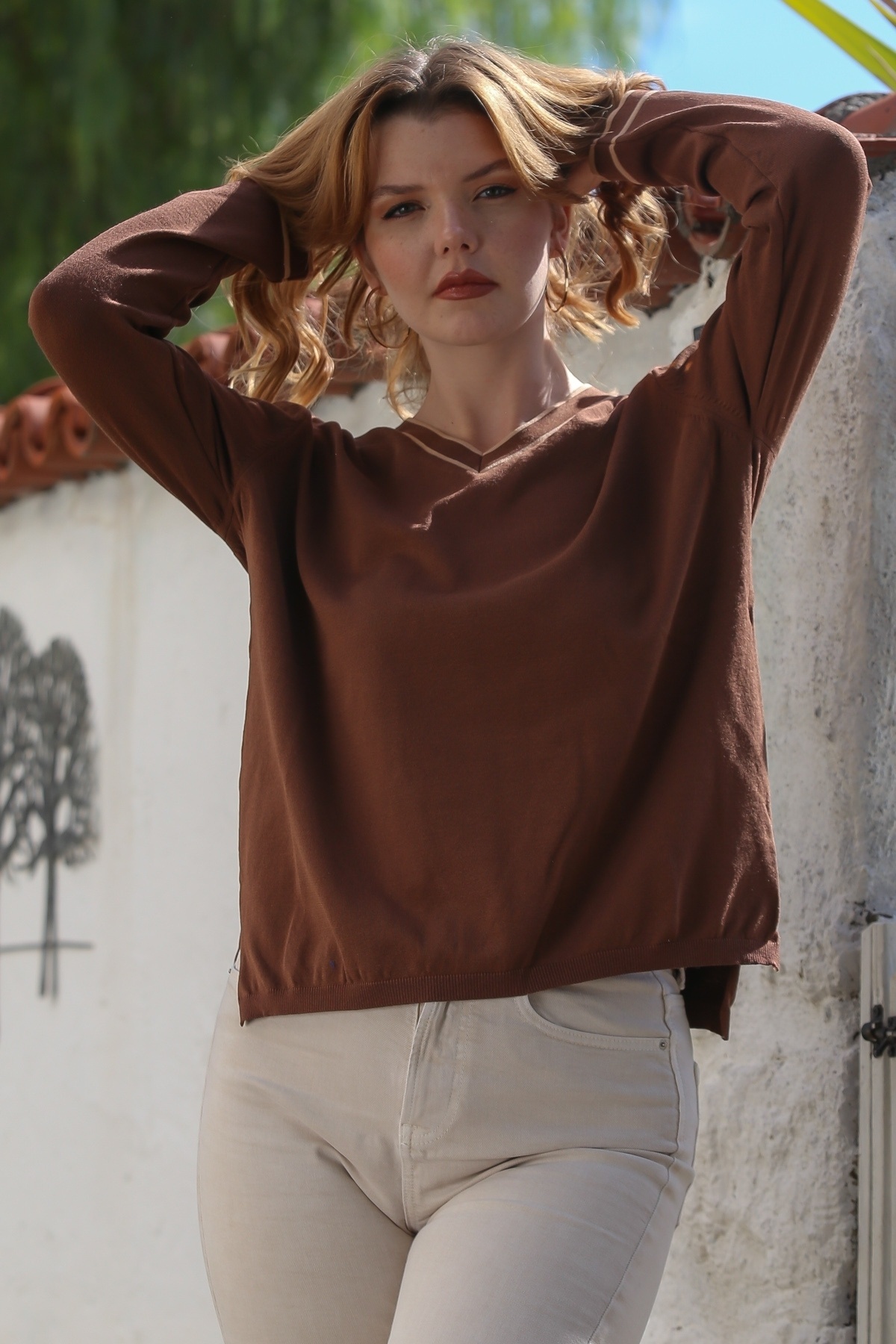 Kahverengi V Yaka Uzun Kol İnce Yırtmaçlı Triko Kazak 65 60 Kahverengi V Yaka Uzun Kol İnce Yırtmaçlı Triko Kazak 65 60 M10010800KZ98268 Standart