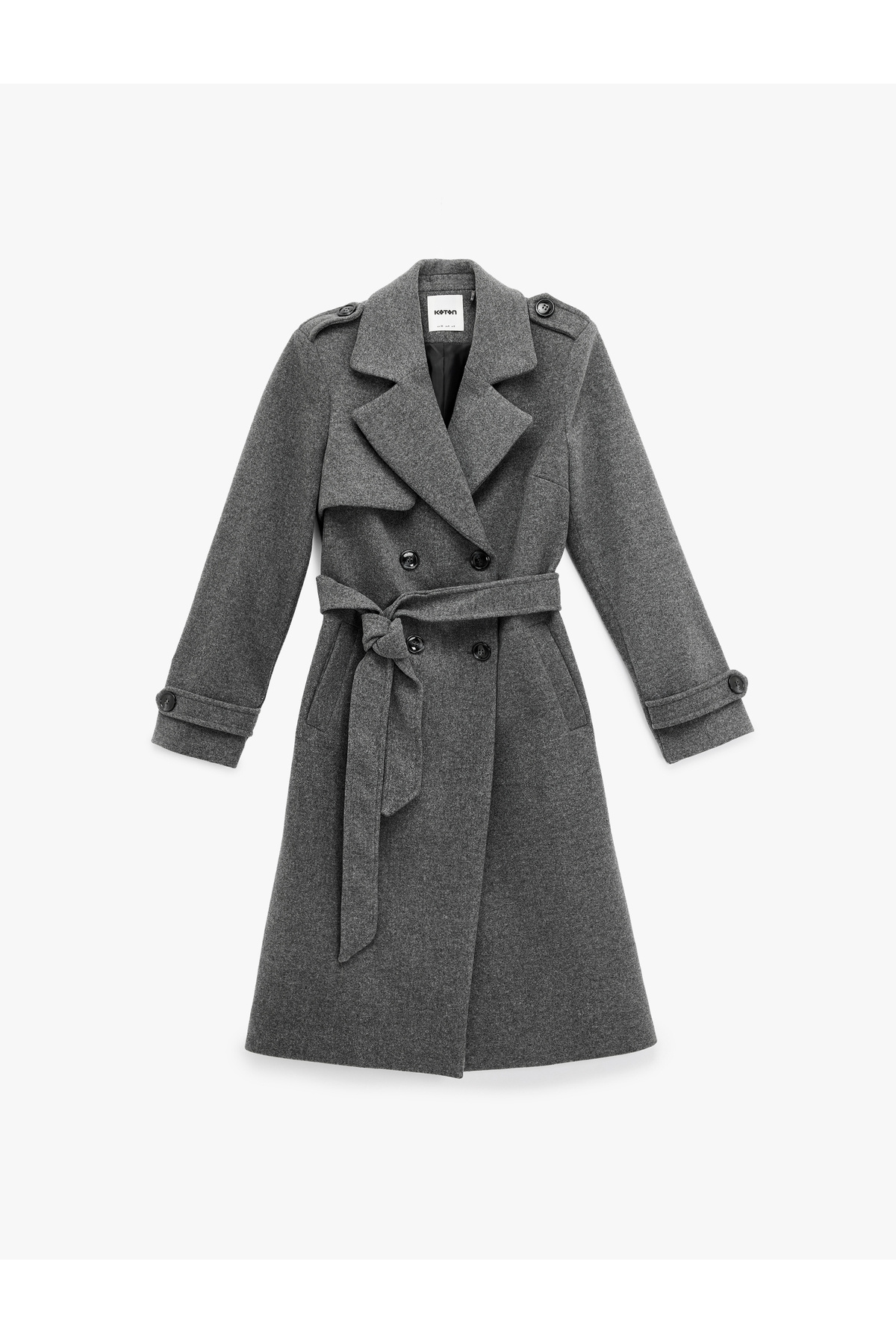 Cepli Uzun Kollu Kemerli Kruvaze Uzun Kaşe Antrasit Kadın Kaban 6WAK00237EW Cepli Uzun Kollu Kemerli Kruvaze Uzun Kaşe Antrasit Kadın Kaban 6WAK00237EW 44