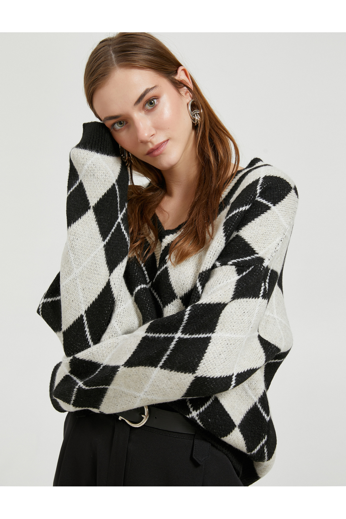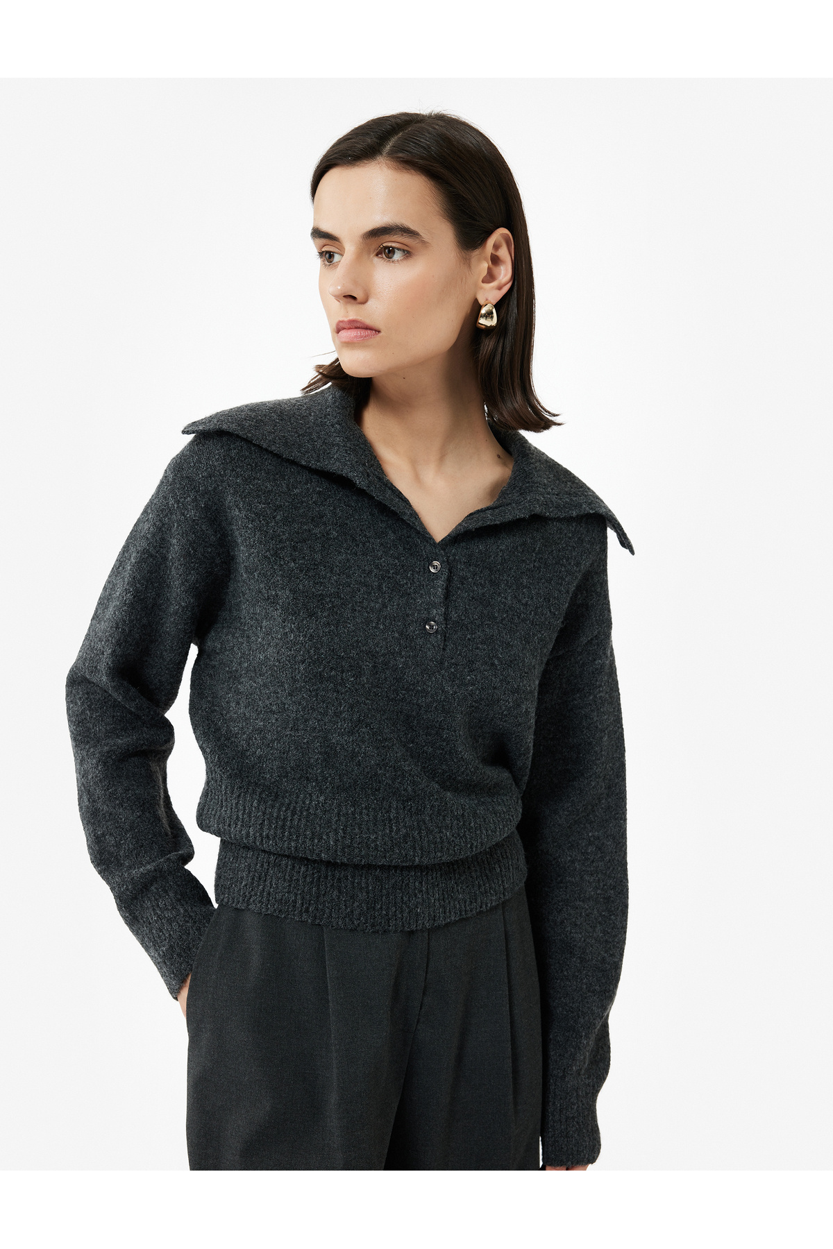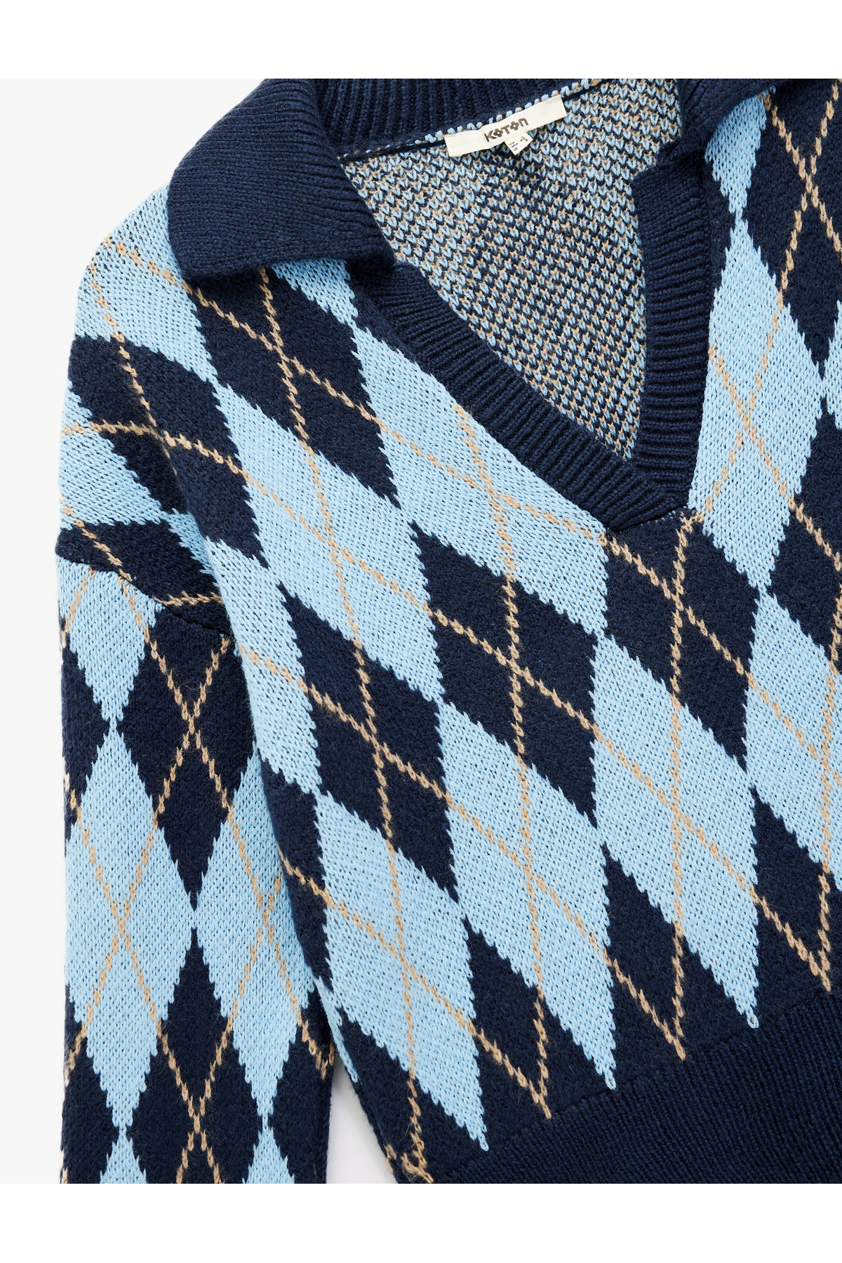 Uzun Kollu Baklava Desenli Polo Yaka Triko Oversize Kazak Uzun Kollu Baklava Desenli Polo Yaka Triko Oversize Kazak 6WAK90055HT XL