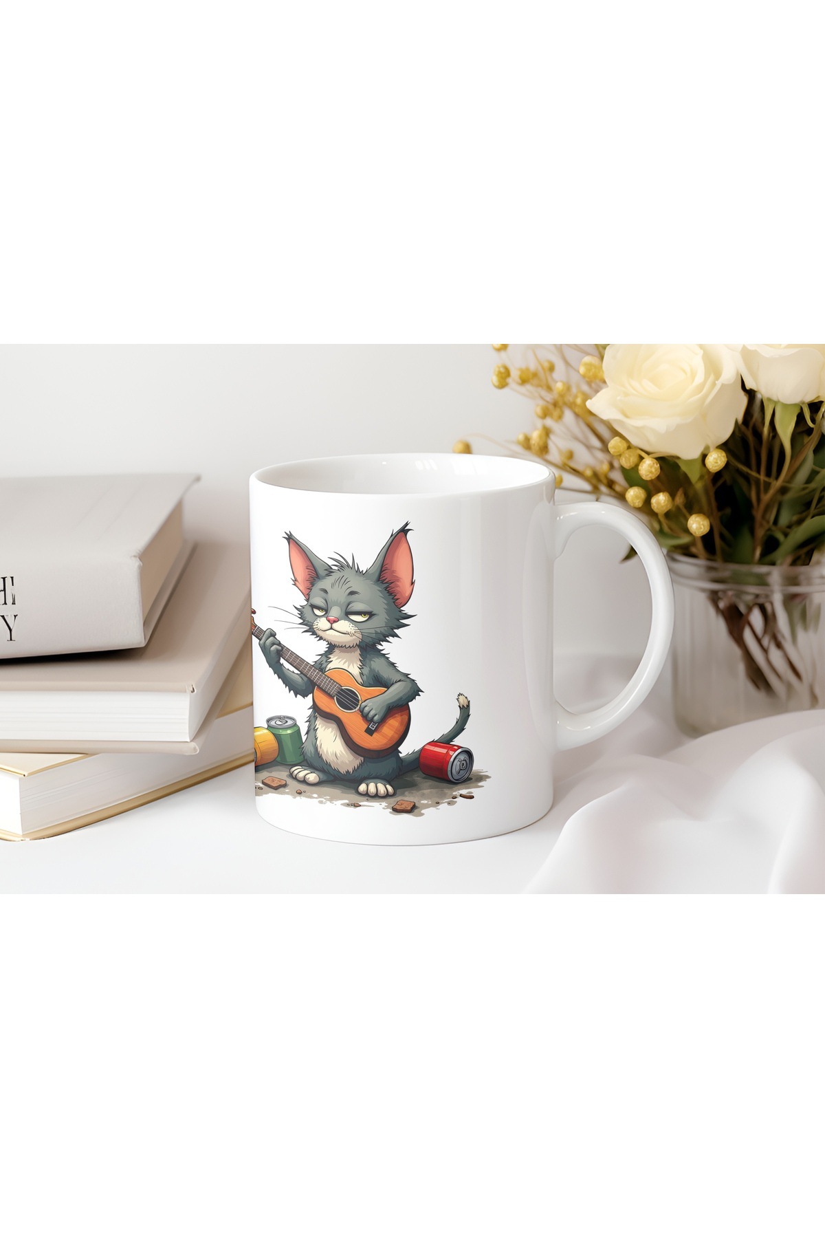Gitar Çalan Sevimli Gri Kedi Kupa Bardak - Komik Kedi Figürlü ve Eğlenceli Tasarımlar - Hediye Gitar Çalan Sevimli Gri Kedi Kupa Bardak - Komik Kedi Figürlü ve Eğlenceli Tasarımlar - Hediye 110kedimedi تک سایز