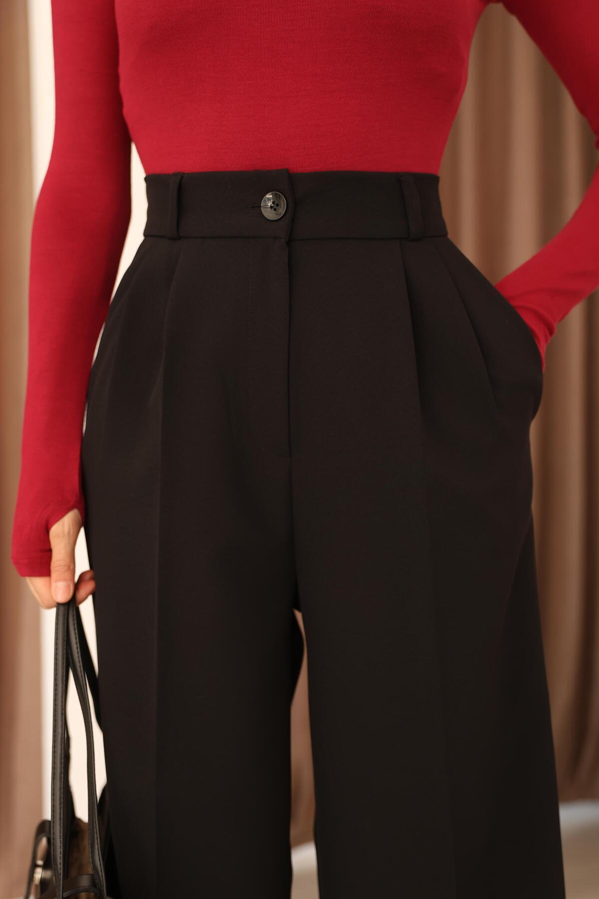 Kadın Siyah Arkası Lastikli Palazzo Pantolon Kadın Siyah Arkası Lastikli Palazzo Pantolon HZL4110 46