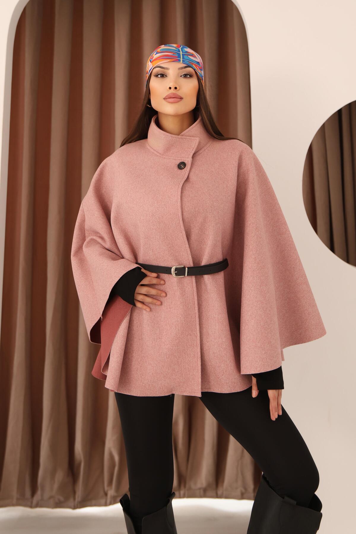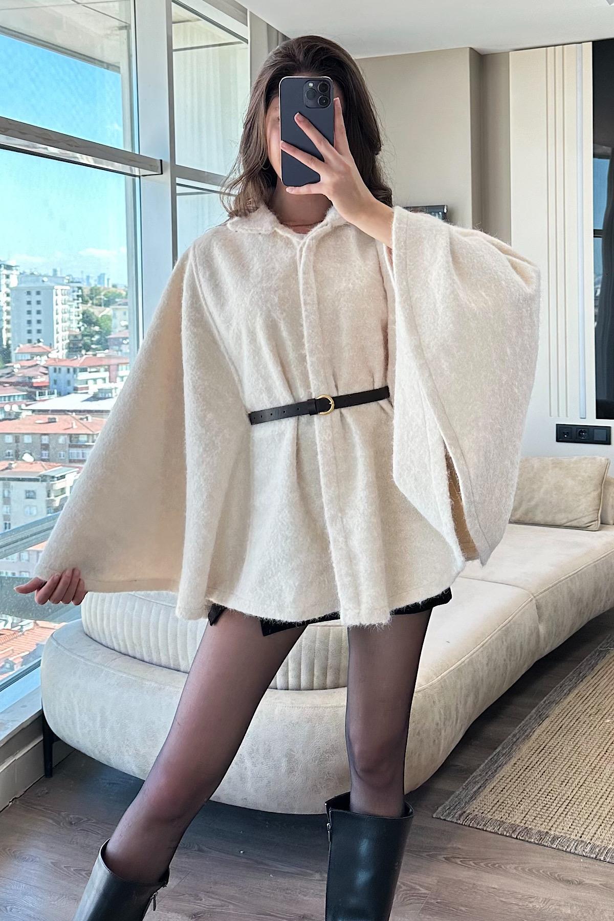 Kadın Gri Kemer Detaylı Pelerin Panço Kaban Kadın Gri Kemer Detaylı Pelerin Panço Kaban HZL4115 Standart