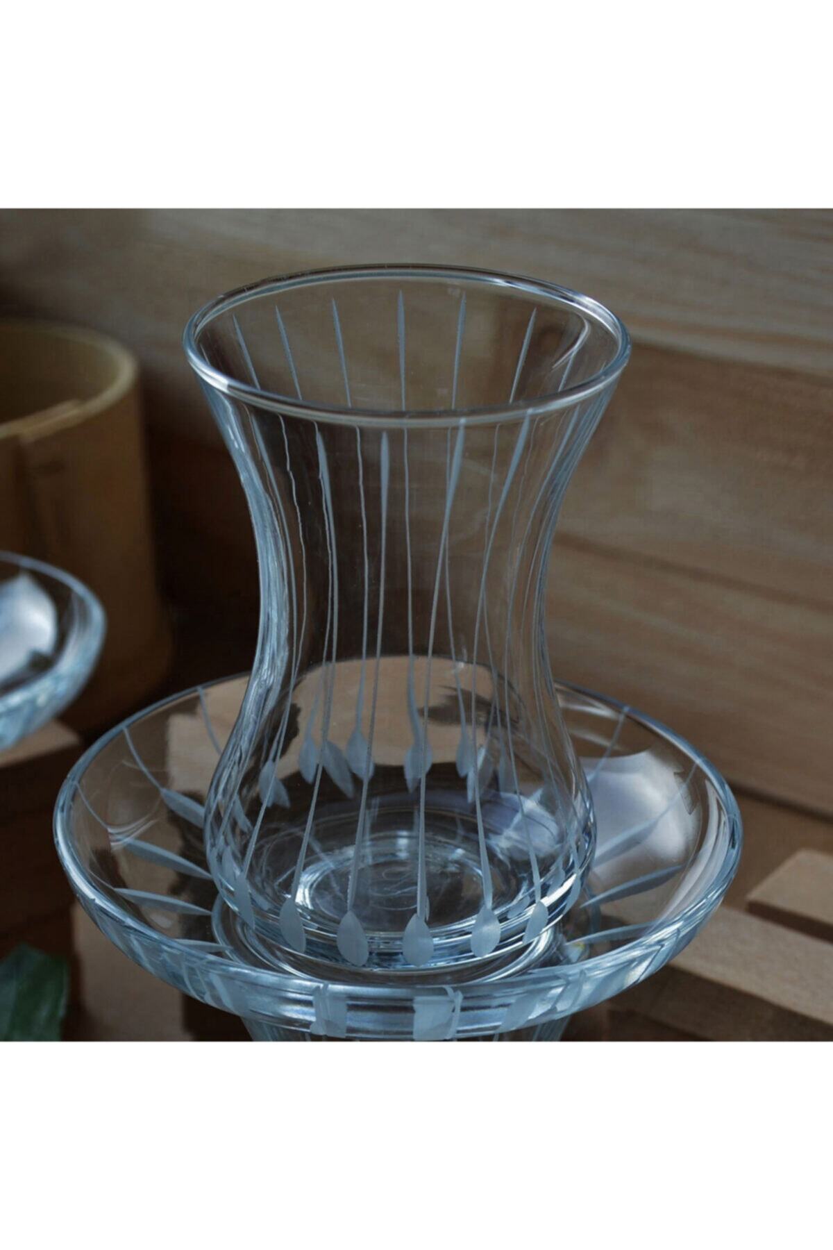 Desenli Cam Çay Bardağı Seti – 6’lı İnce Belli Tabaklı Çay Takımı Desenli Cam Çay Bardağı Seti – 6’lı İnce Belli Tabaklı Çay Takımı ECV-BKR-TRS06 تک سایز