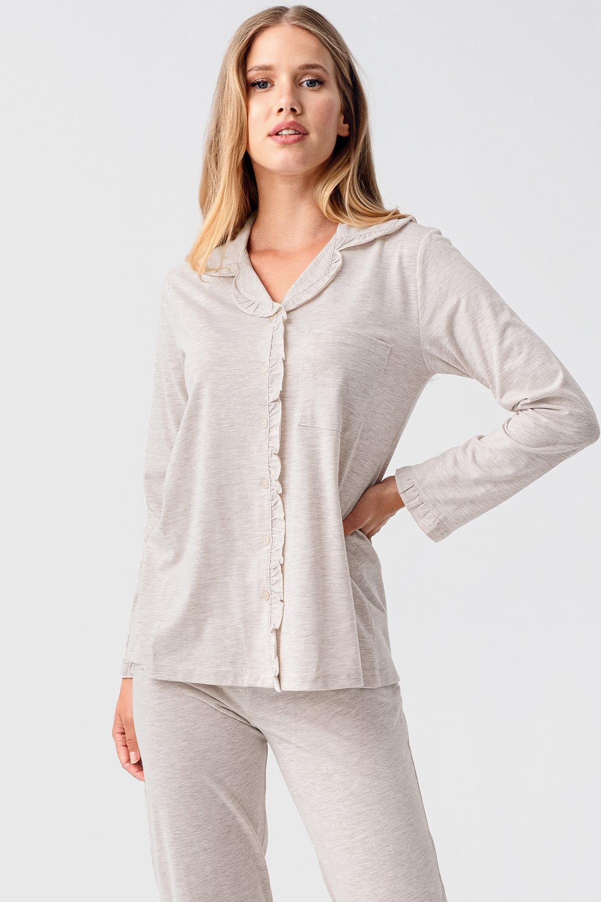 Kadın Uzun Kollu Düğmeli Esnek Pamuklu Sabahlık Pijama Takımı Kadın Uzun Kollu Düğmeli Esnek Pamuklu Sabahlık Pijama Takımı 23112 XL