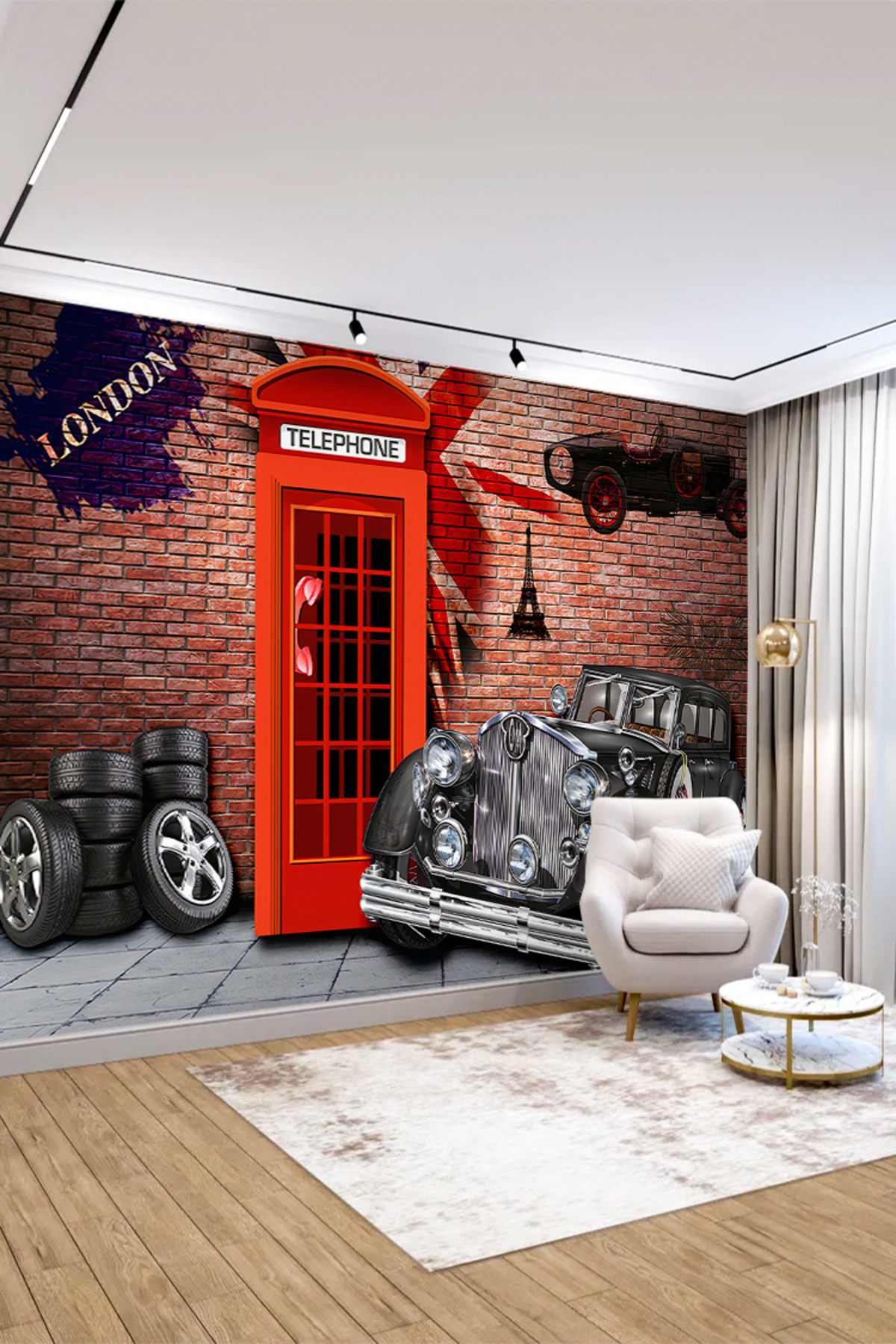 London Temalı Vintage Araba ve Telefon Kulübesi Duvar Kağıdı London Temalı Vintage Araba ve Telefon Kulübesi Duvar Kağıdı 6637270200 550 x 280