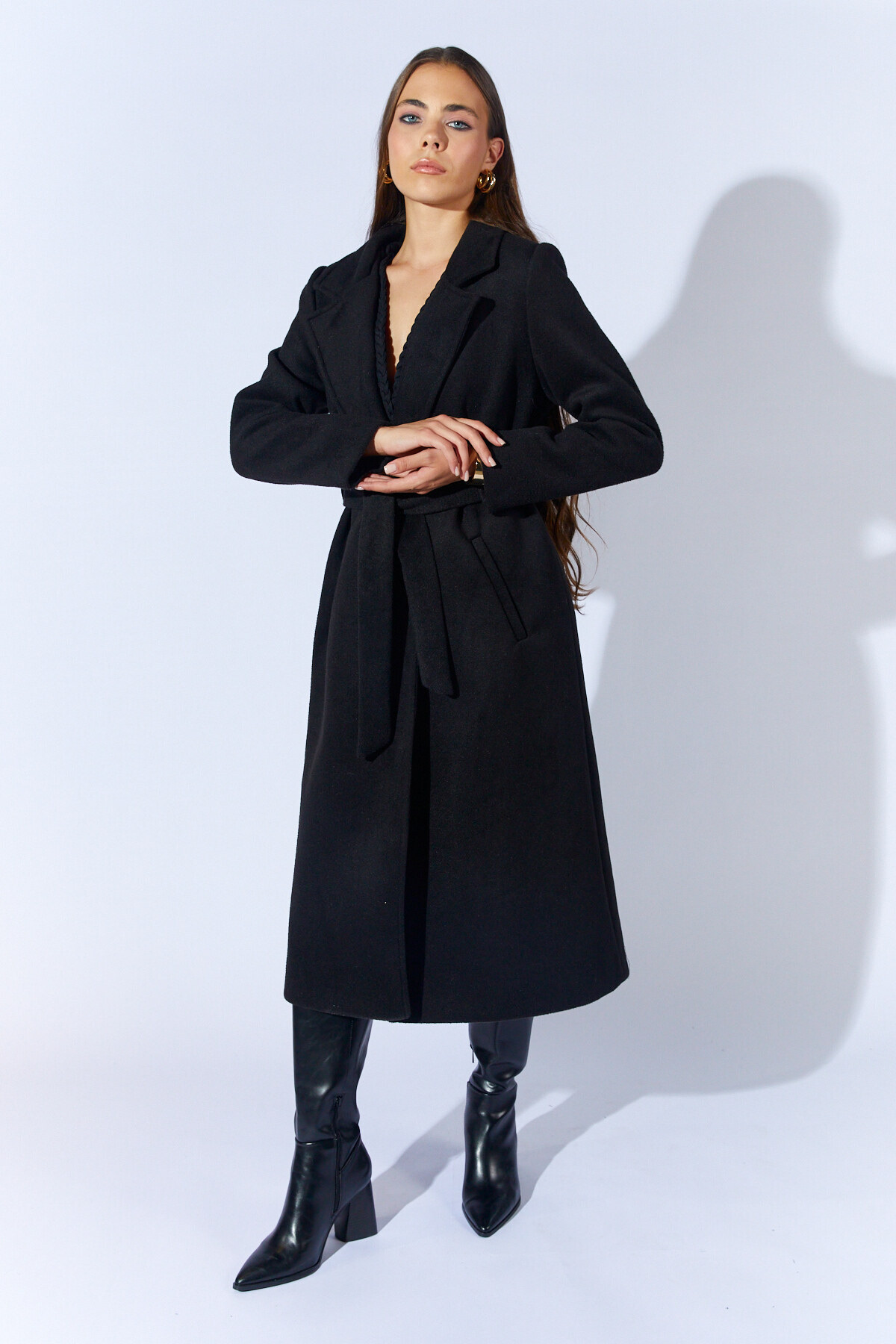 Siyah Kuşaklı Tam Kalıp Uzun Kaban | EK100385556 Siyah Kuşaklı Tam Kalıp Uzun Kaban | EK100385556 L