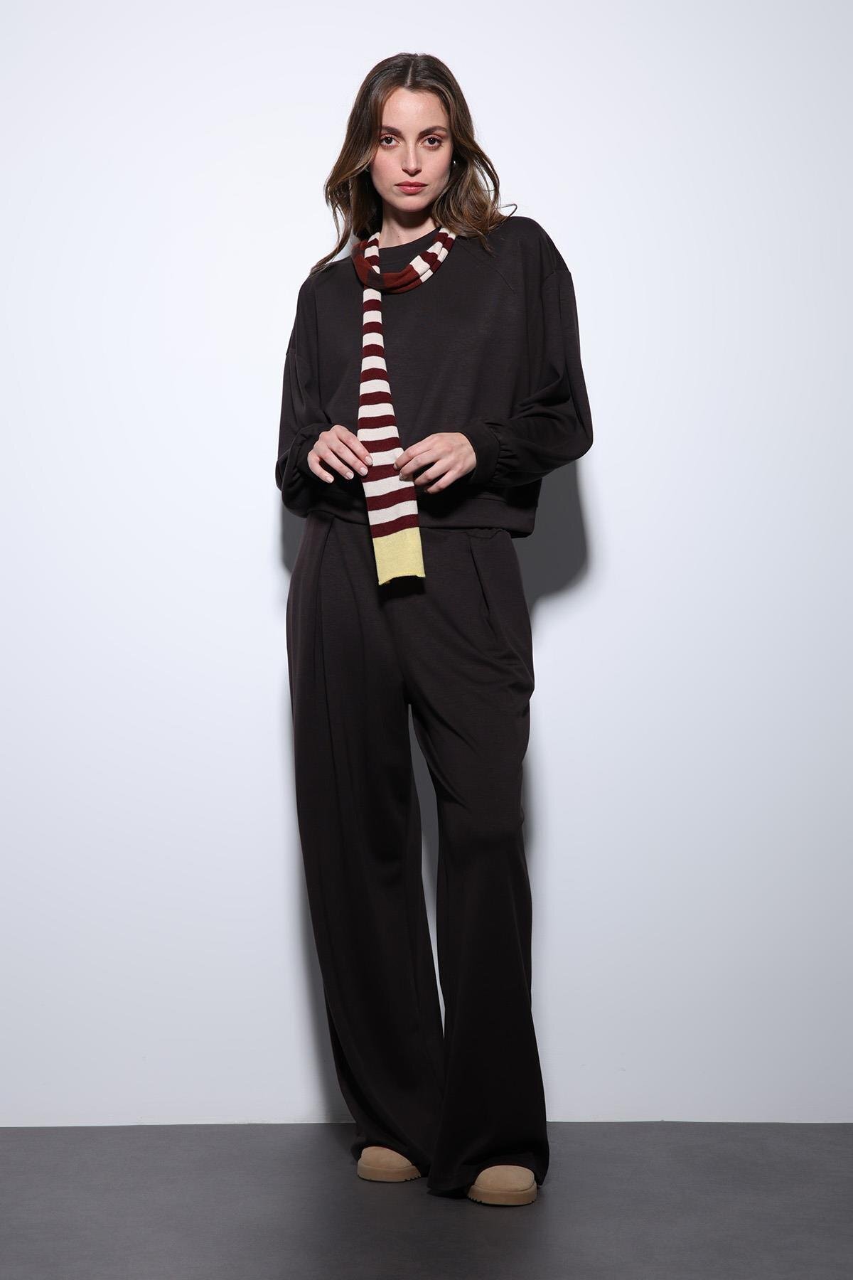 Ekru Geniş Paça Relaxed Kadın Takım Ekru Geniş Paça Relaxed Kadın Takım BA25Y017 L