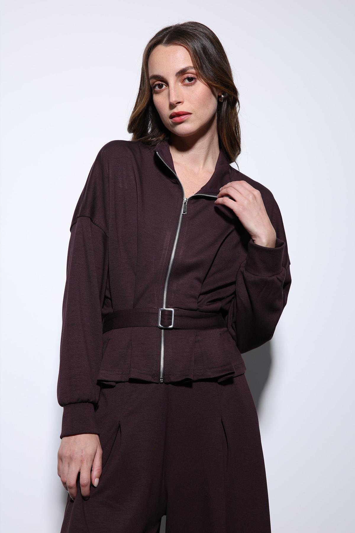 Mürdüm Bel Kemerli Geniş Paça Pantolonlu Takım Mürdüm Bel Kemerli Geniş Paça Pantolonlu Takım BA25YTKM018 L