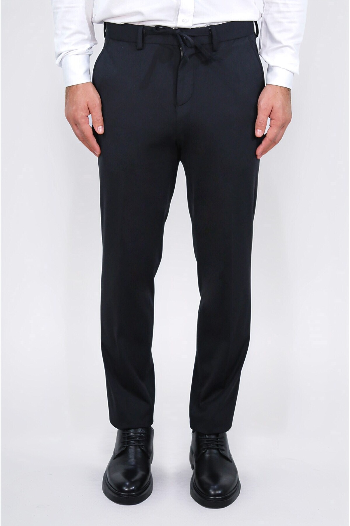 hafif dokulu kendinden kemerli siyah jogger tek pantolon hafif dokulu kendinden kemerli siyah jogger tek pantolon PRA-13226458-603596 56