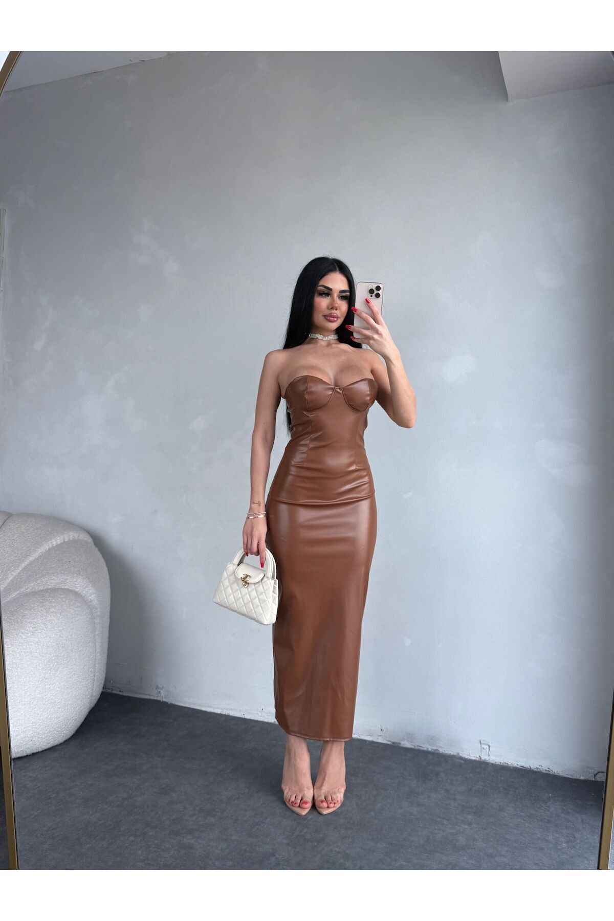 Gül Detaylı Kristal Kumaş Likralı Zarif Elbise Gül Detaylı Kristal Kumaş Likralı Zarif Elbise gdtye001 L