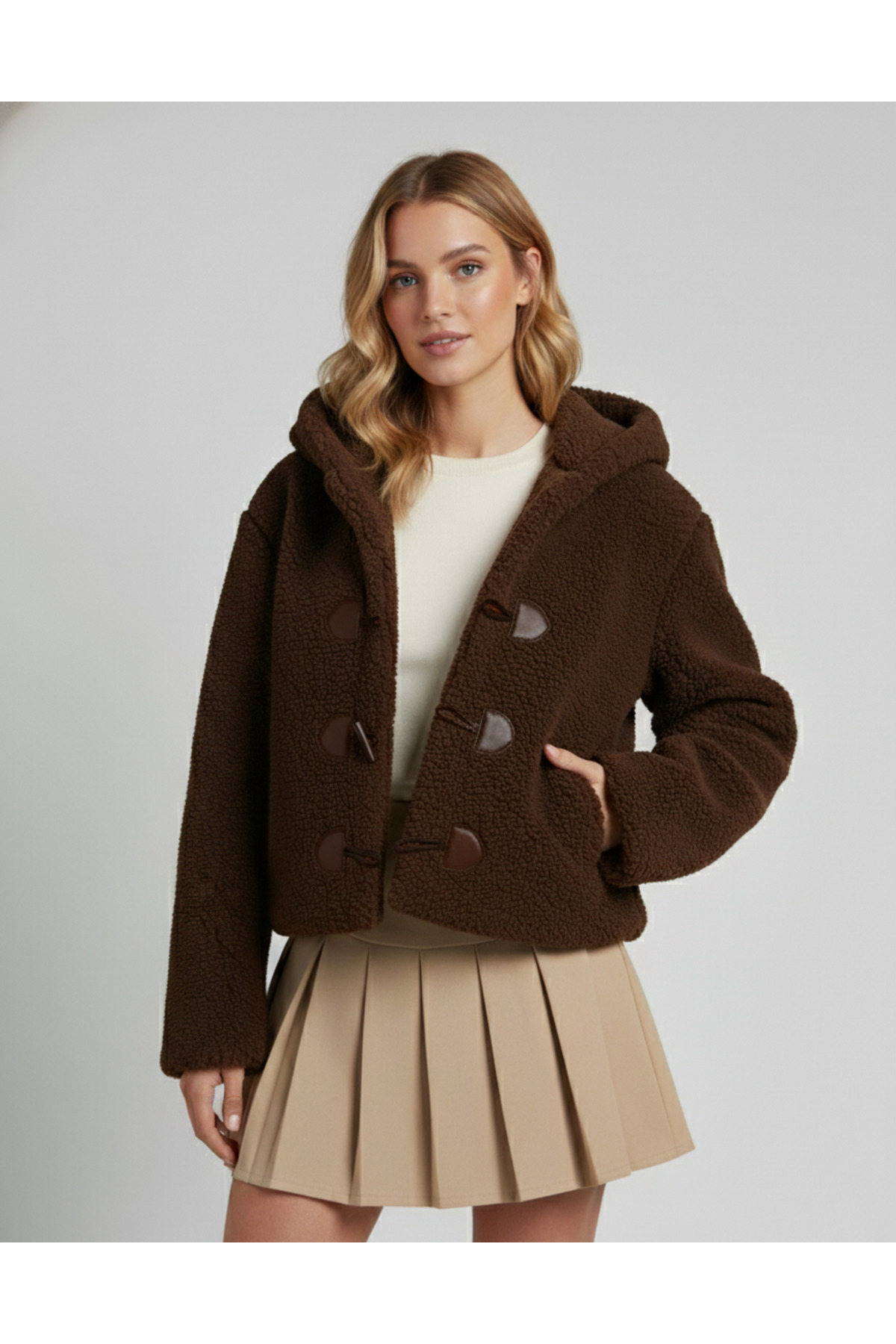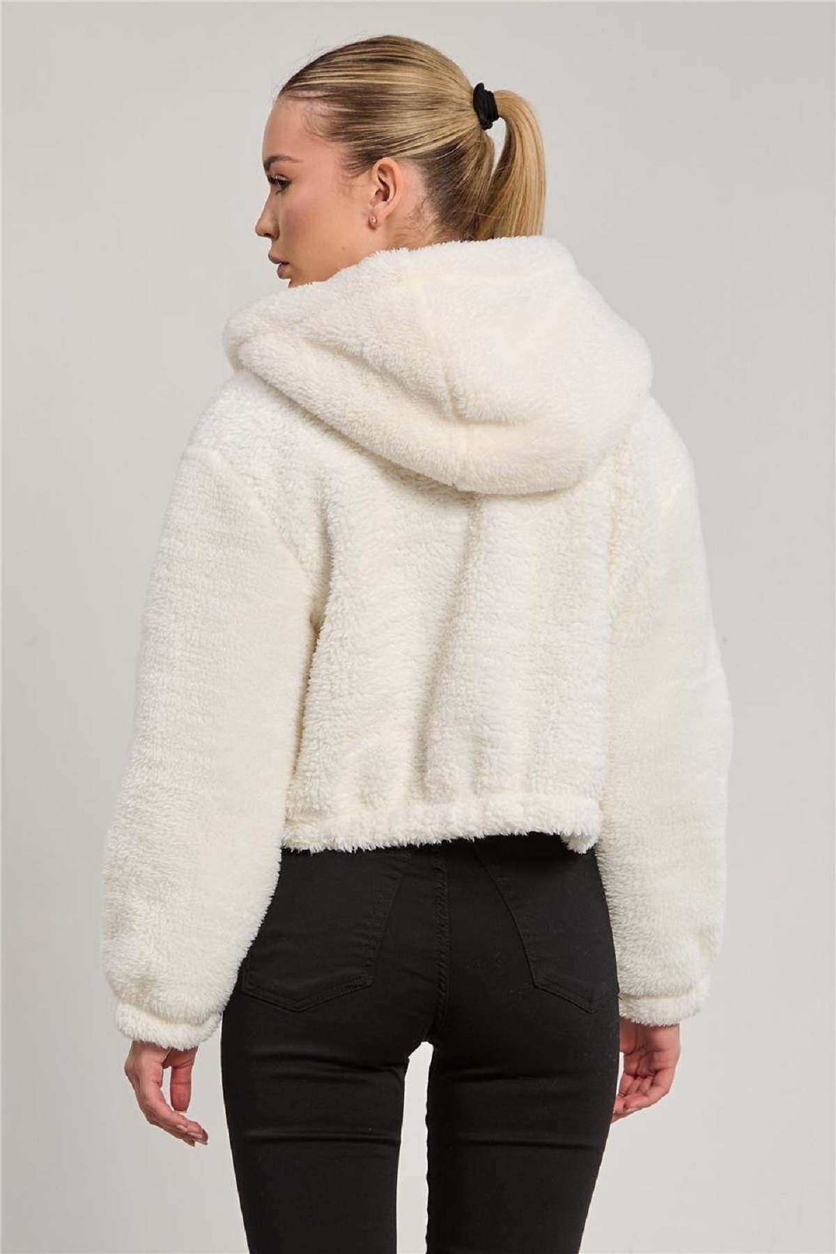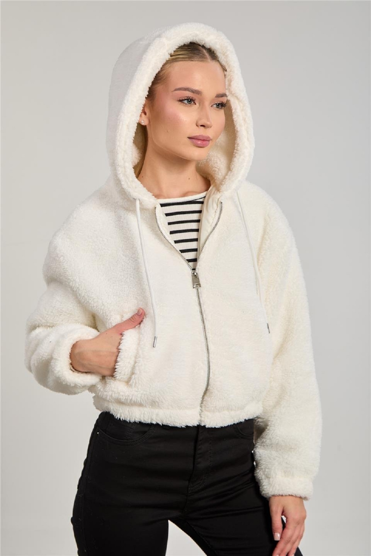 Kadın Kapüşonlu Önü Fermuarlı Peluş Crop Mont Kadın Kapüşonlu Önü Fermuarlı Peluş Crop Mont 25K50001OP XL