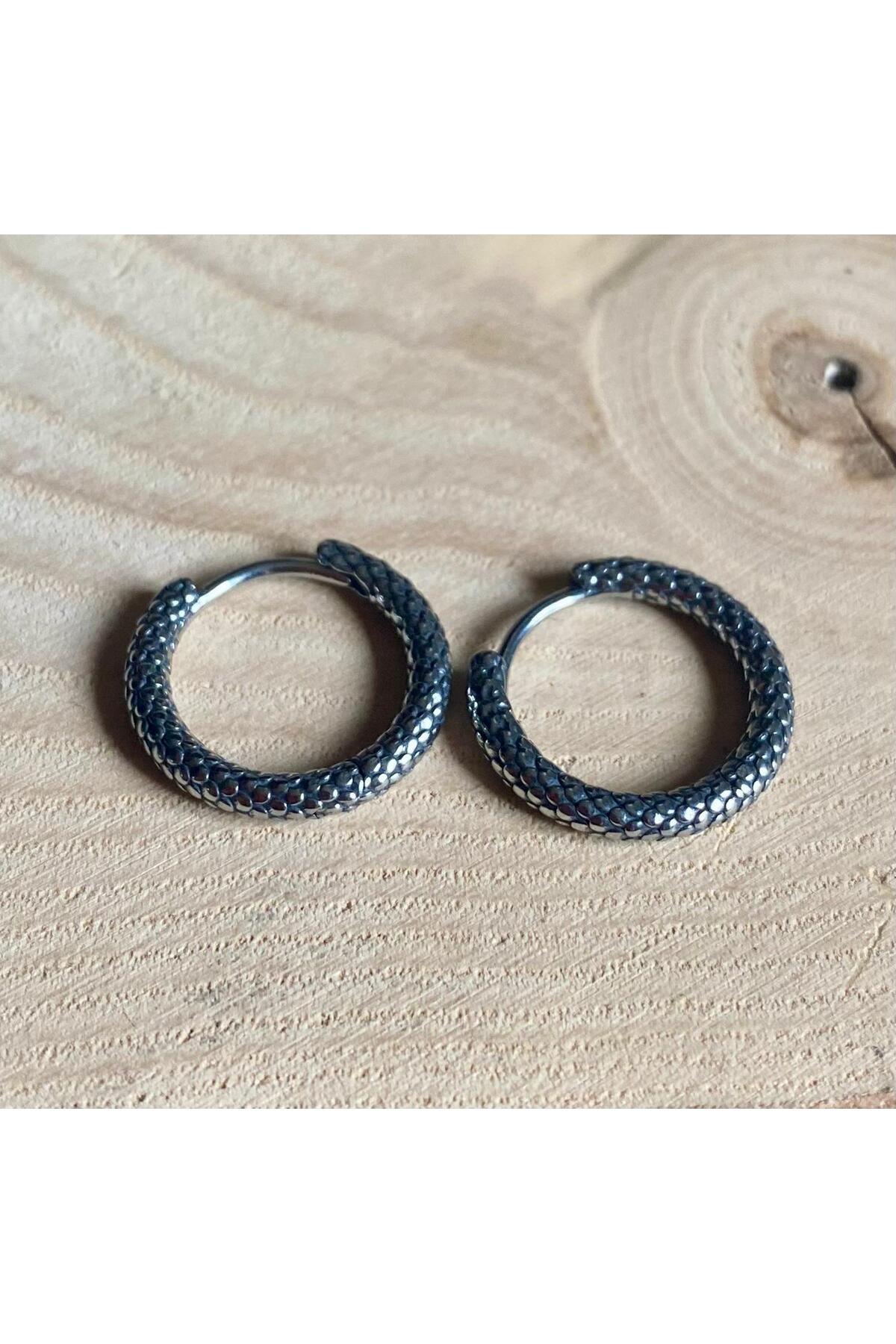Ejder Derisi Tasarım Halka Geçirmeli 316L Paslanmaz Kararmaz Çelik Küpe Çift Ejder Derisi Tasarım Halka Geçirmeli 316L Paslanmaz Kararmaz Çelik Küpe Çift NSS00001986 تک سایز
