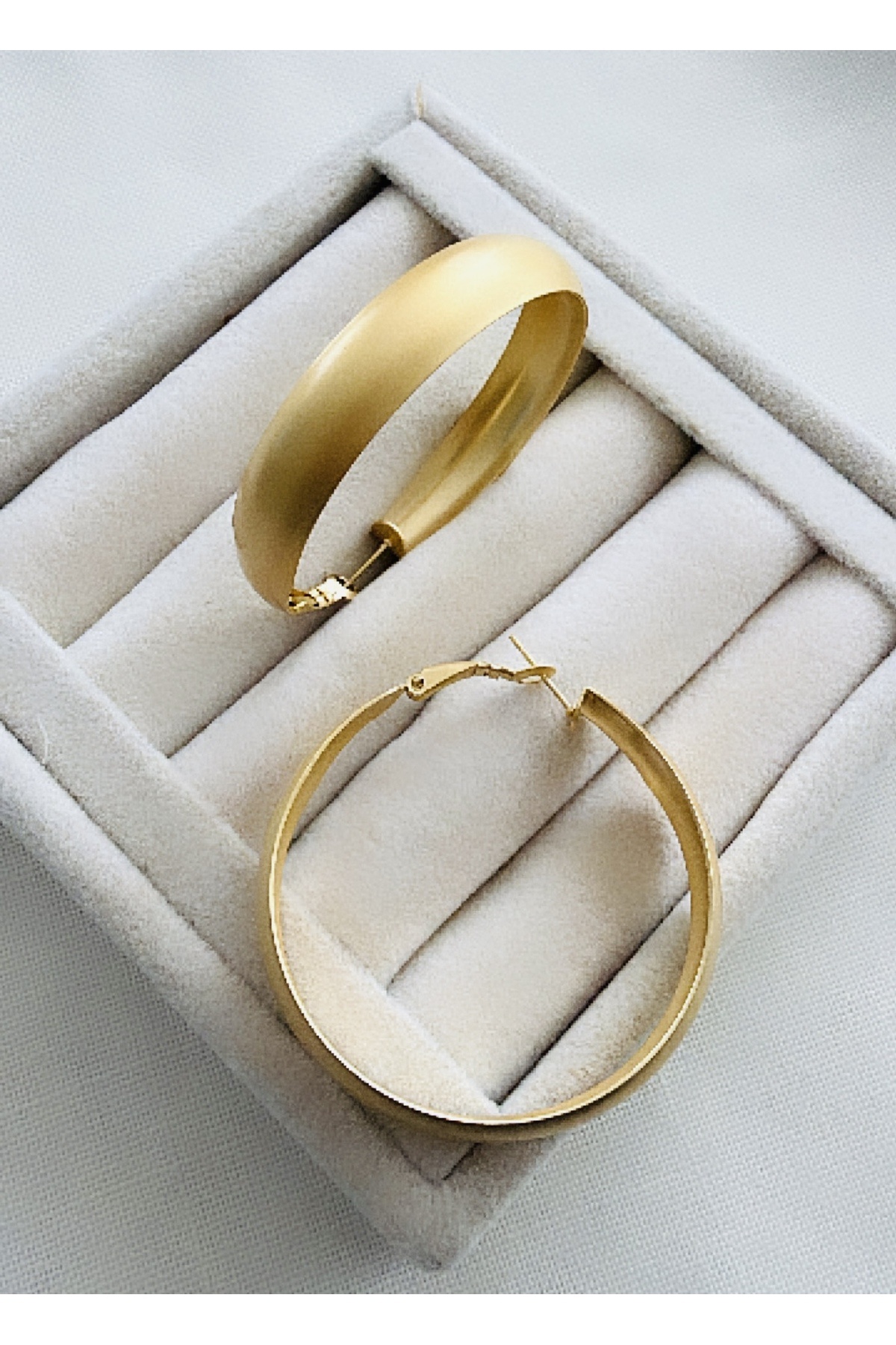 İthal Mat Rodyum Kaplama Kalın Gold Halka Küpe (5 CM) İthal Mat Rodyum Kaplama Kalın Gold Halka Küpe (5 CM) VNS--1496 تک سایز