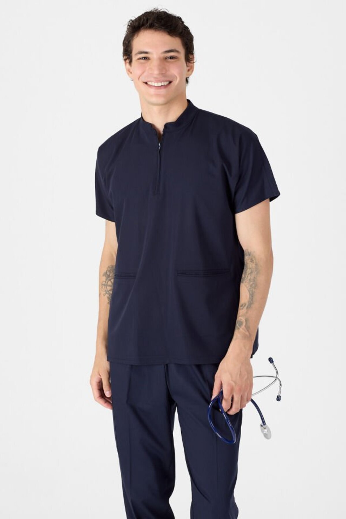 Likralı Koyu Lacivert Hakim Yaka Scrubs Likralı Koyu Lacivert Hakim Yaka Scrubs KYLC6 42