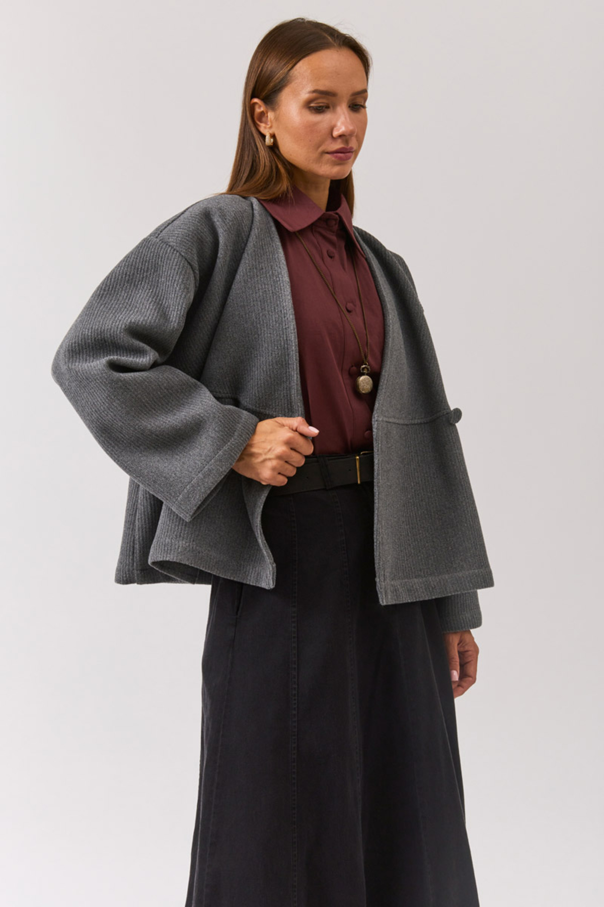 V Yaka Kruvaze Ceket Gri V Yaka Kruvaze Ceket Gri 8323 XL