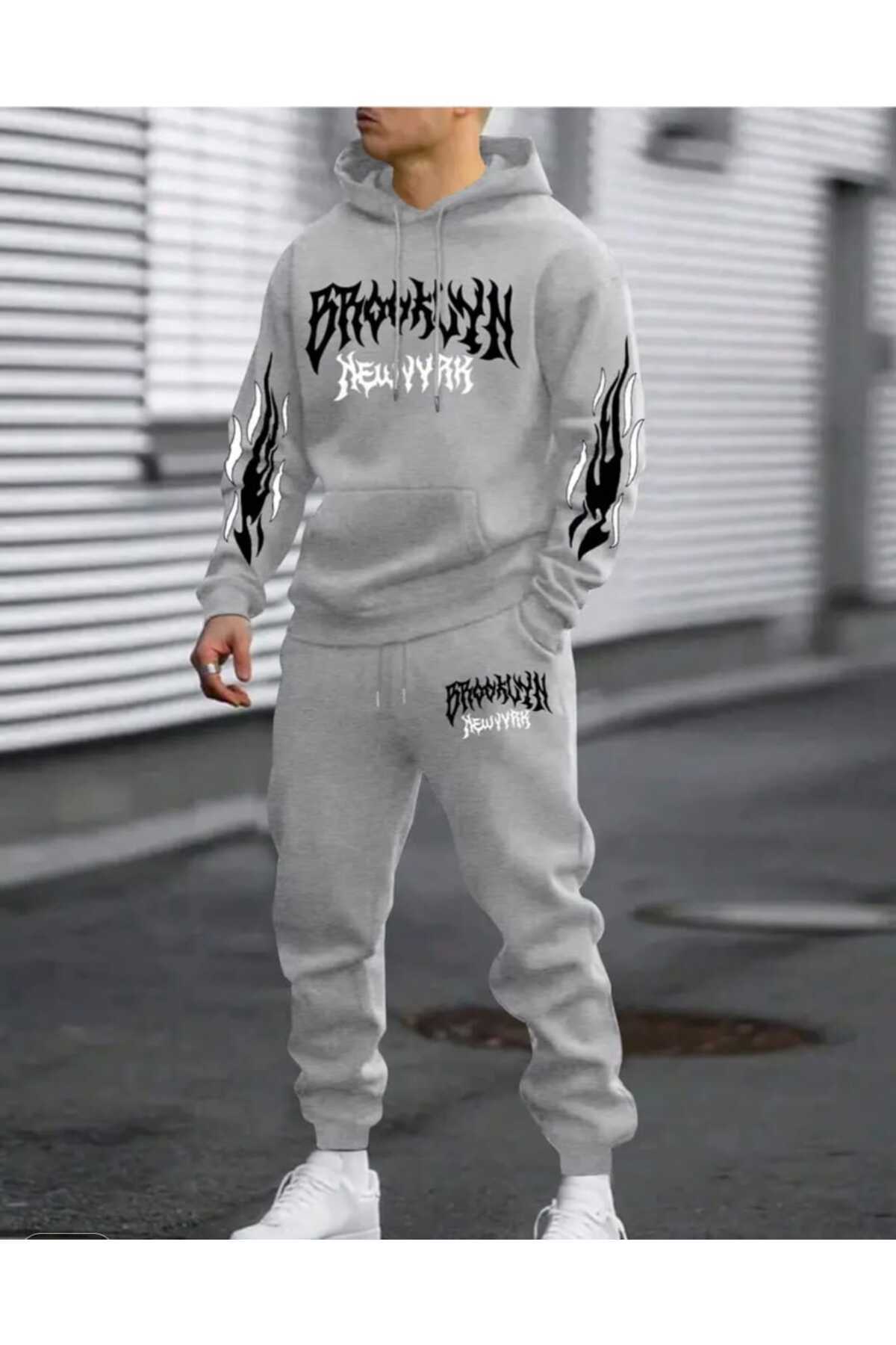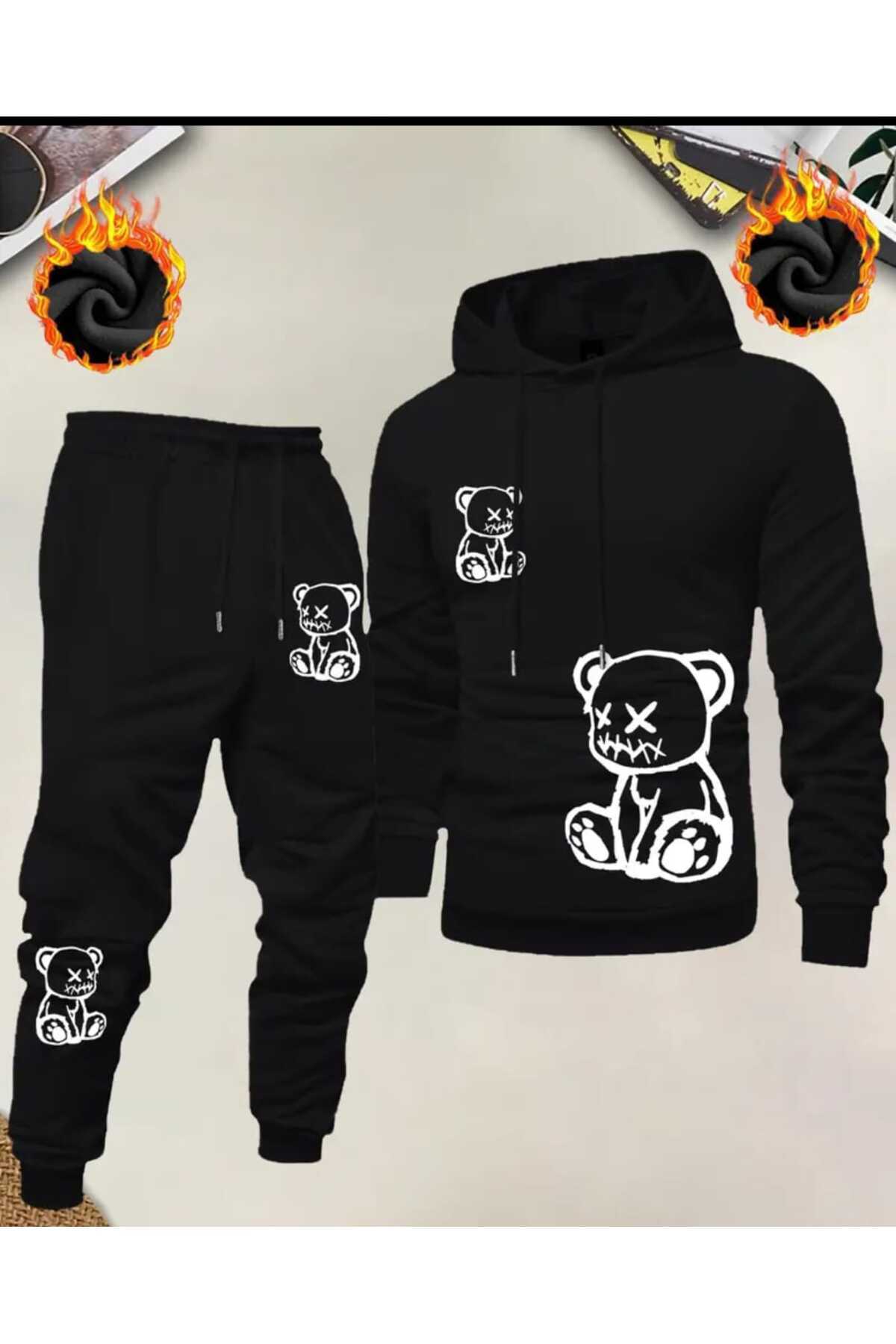 Erkek Oyun Kartı Baskılı Kapüşonlu Eşofman Takımı Erkek Oyun Kartı Baskılı Kapüşonlu Eşofman Takımı sonplv1015756 6XL