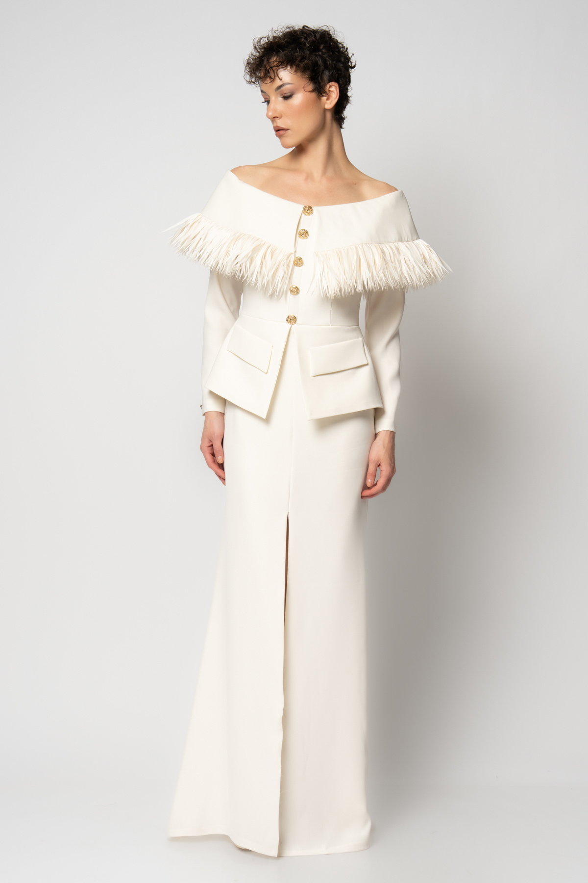 Tek taraftan uzun ceketli pantolon krep abiye takım Tek taraftan uzun ceketli pantolon krep abiye takım 6383 48