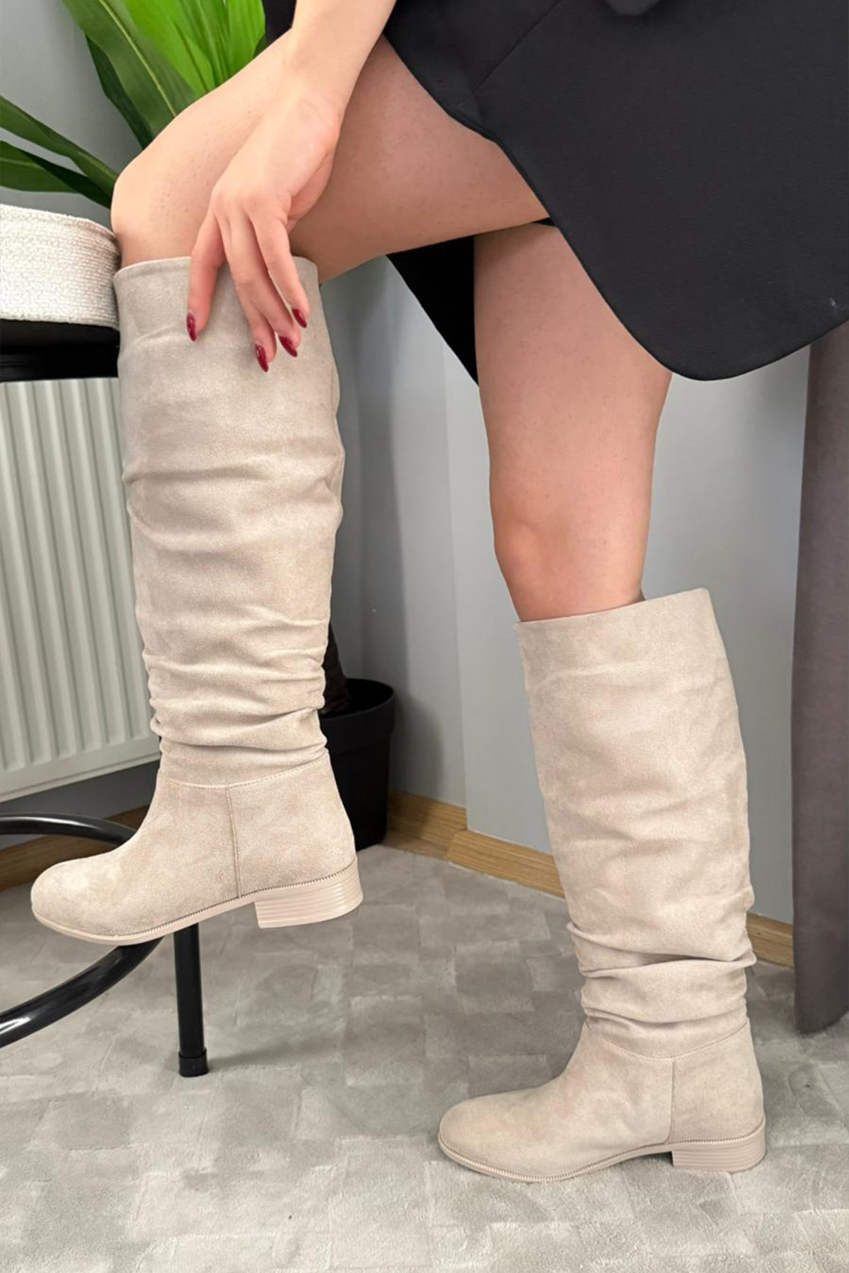 Kadın Mika Düz Taban Büzgülü Diz Altı Boy Çekme Çizme Kadın Mika Düz Taban Büzgülü Diz Altı Boy Çekme Çizme 26WMİKA 40