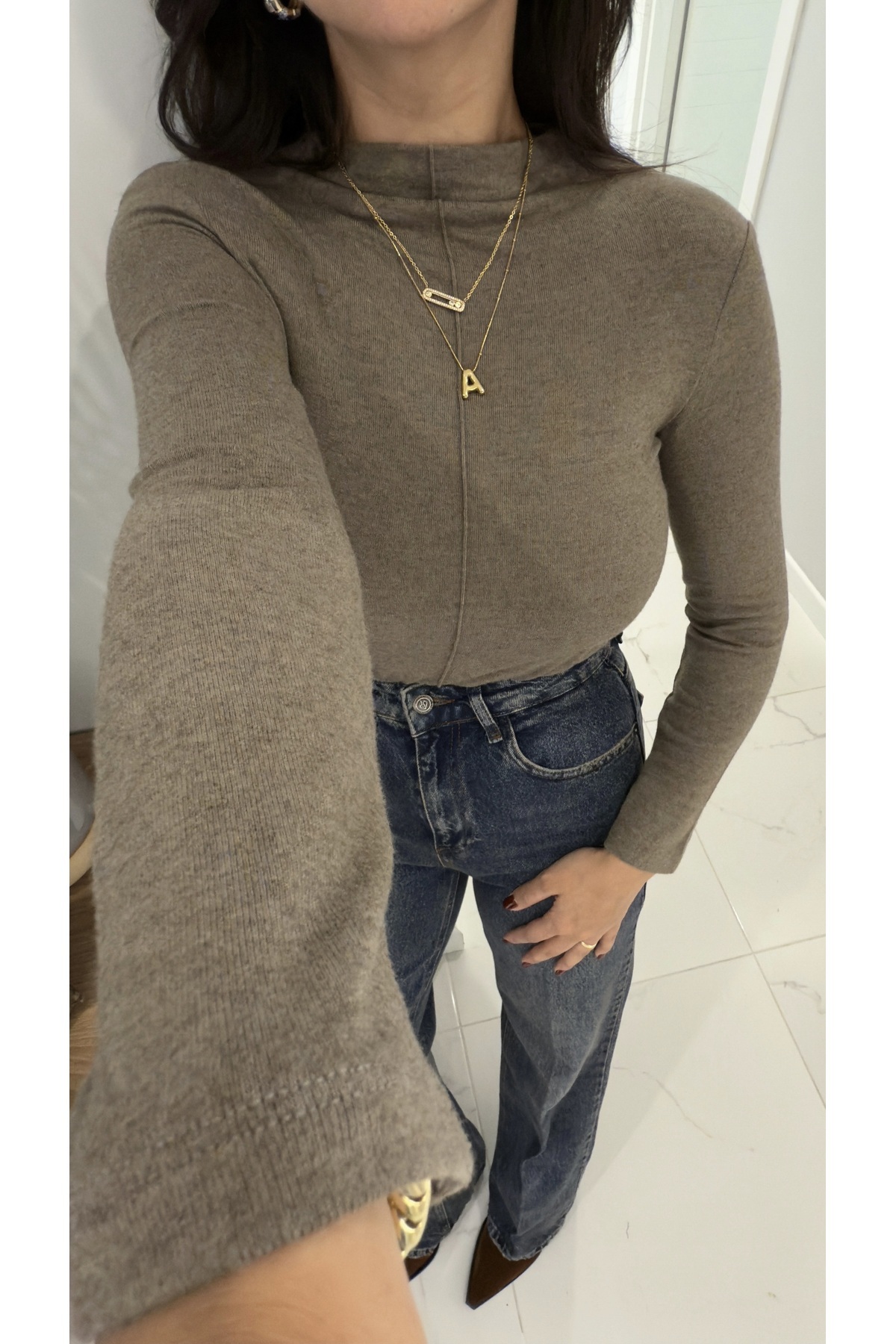 Dlvin Honda Açık Haki Dik Yaka Triko Dlvin Honda Açık Haki Dik Yaka Triko TRK569 L