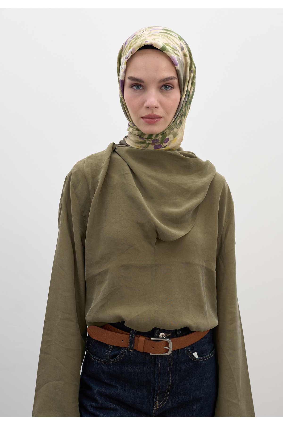 JOSIANE DESEN PAMUKLU VİSKON EŞARP VİZON JOSIANE DESEN PAMUKLU VİSKON EŞARP VİZON FS25DSNE000027 تک سایز