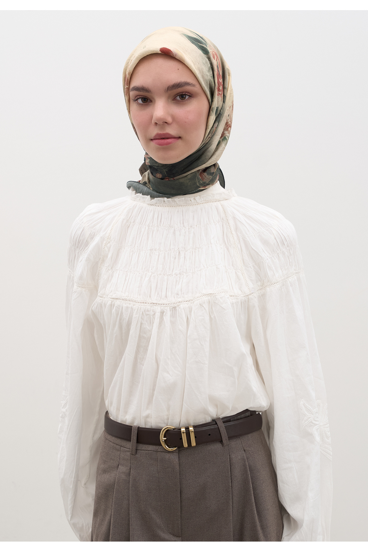 MARIELLE DESEN PAMUKLU VİSKON EŞARP AĞAÇ KABUĞU MARIELLE DESEN PAMUKLU VİSKON EŞARP AĞAÇ KABUĞU FS25DSNE000031 تک سایز