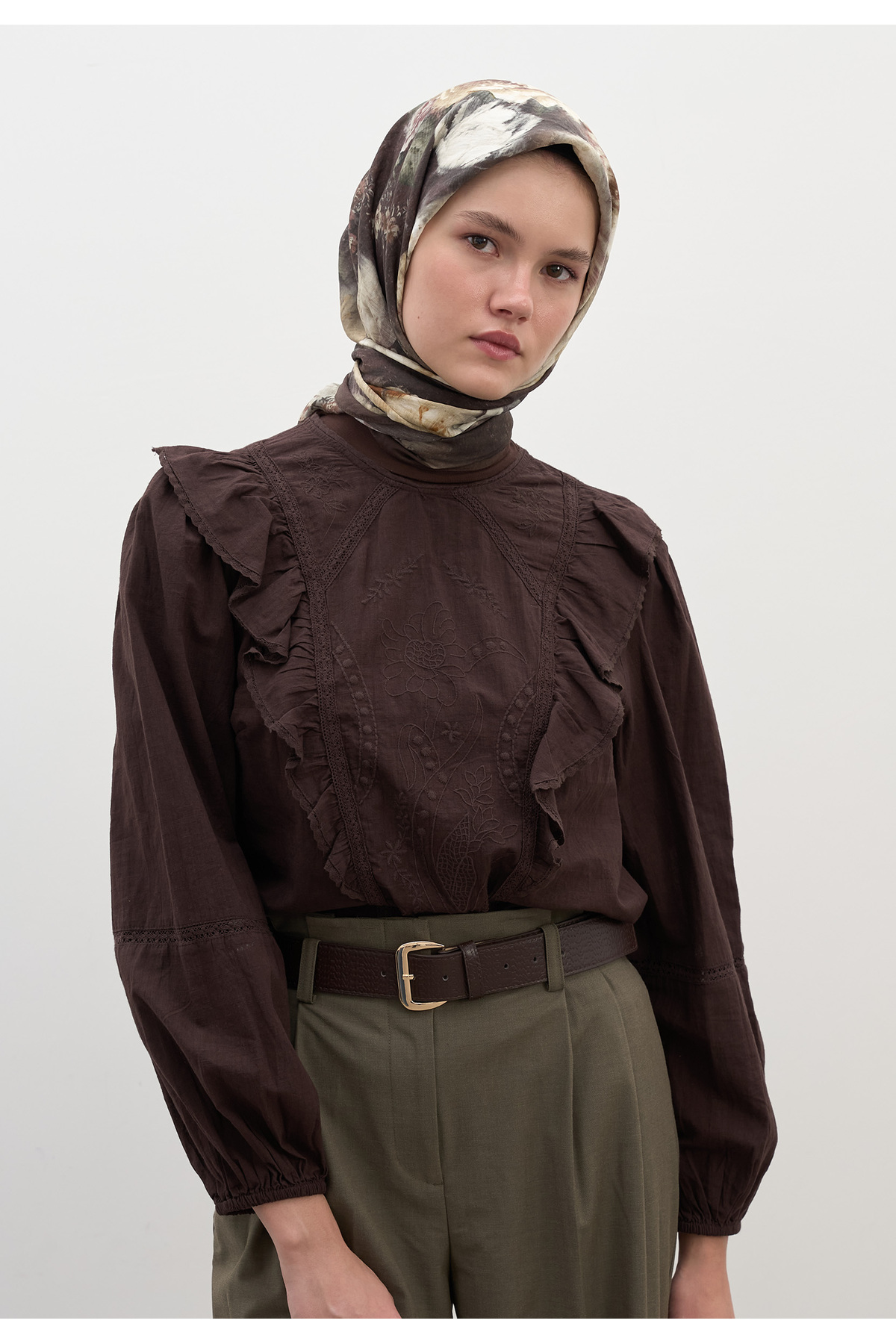 TINY PLUMERIA DESEN PAMUKLU VİSKON EŞARP KİREMİT TINY PLUMERIA DESEN PAMUKLU VİSKON EŞARP KİREMİT FS25DSNE000018 تک سایز