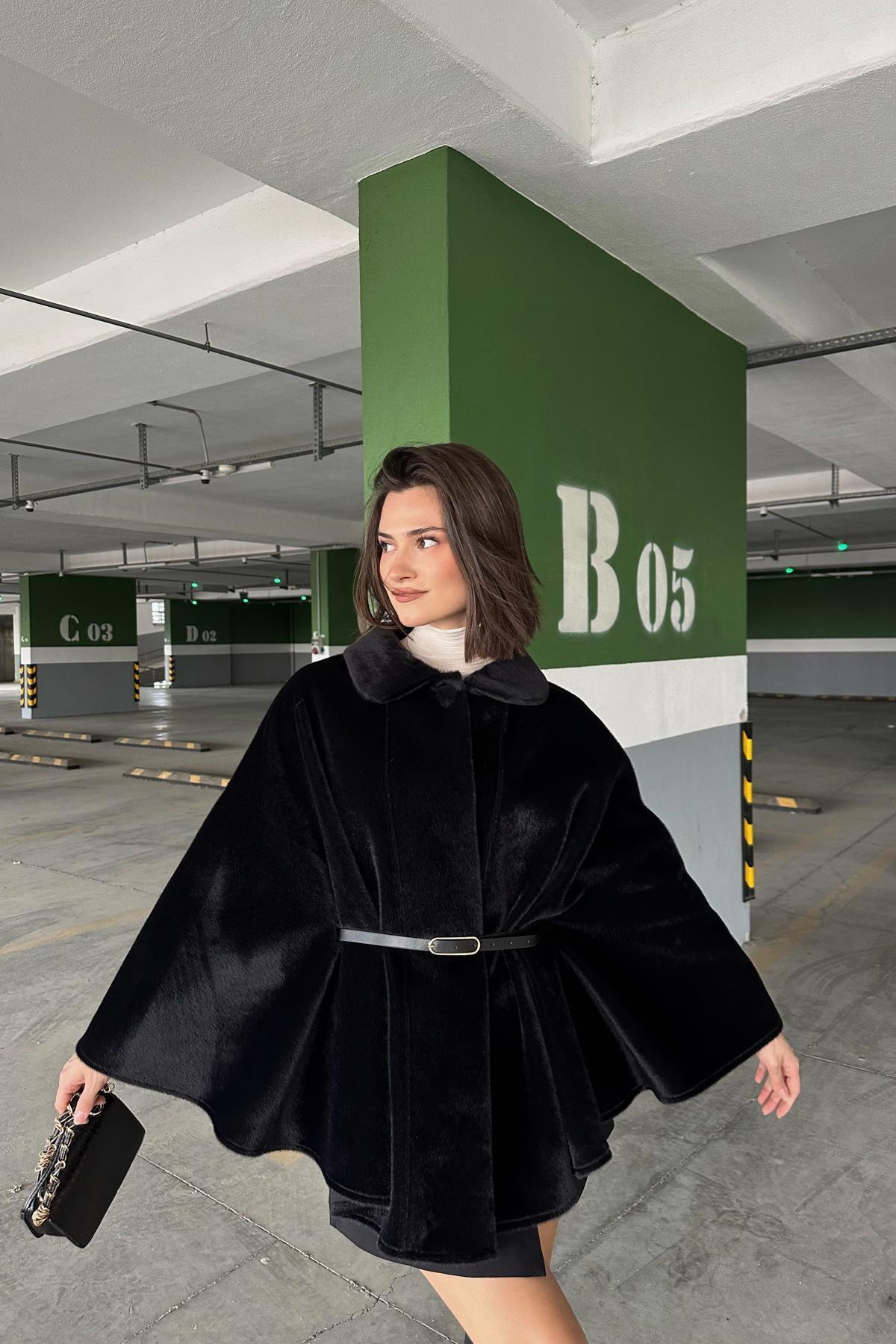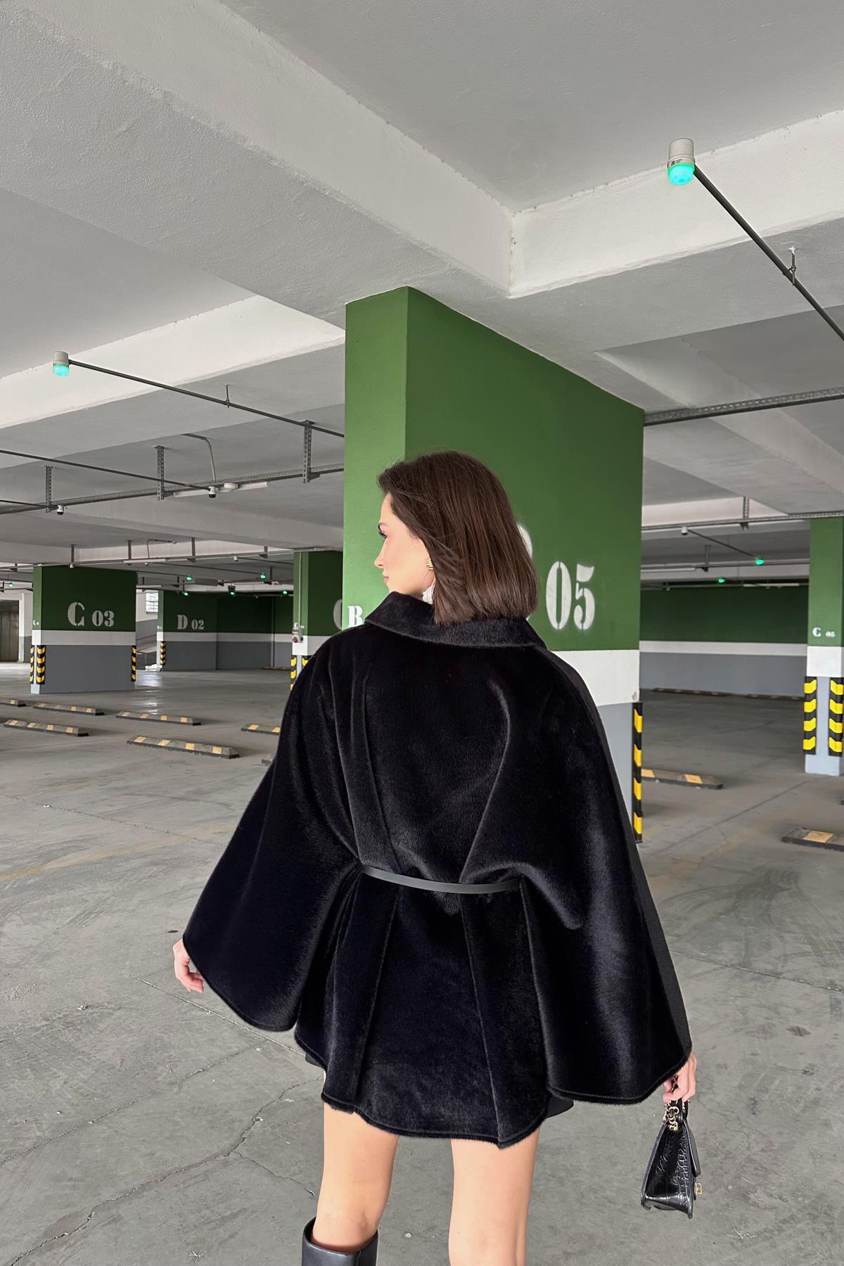Premıum Tüylü Panço Siyah Premıum Tüylü Panço Siyah TX9AD2483639877 Standart