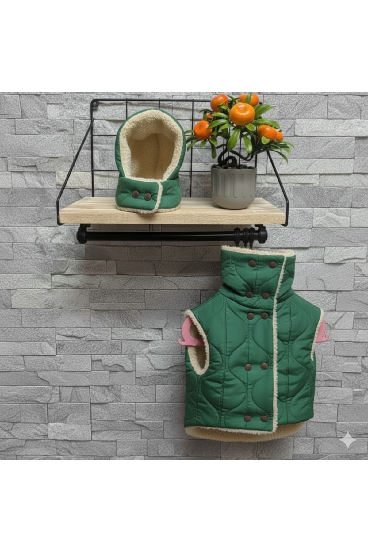 Yeşil İçi Peluşlu Köpek Yelek ve Şapka Takımı Yeşil İçi Peluşlu Köpek Yelek ve Şapka Takımı YEŞİLYELEKTAKIM XS