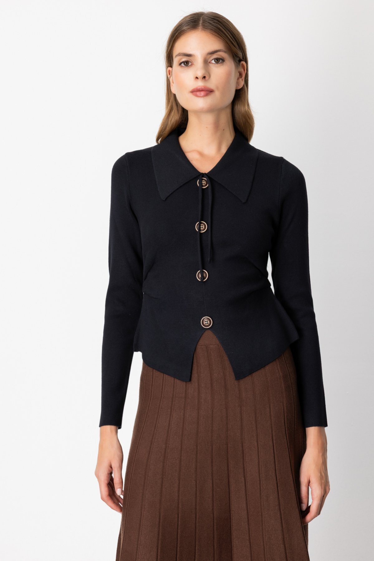 Süs Düğmeli Büzgü Detaylı Triko Kazak 65353-26k Süs Düğmeli Büzgü Detaylı Triko Kazak 65353-26k L
