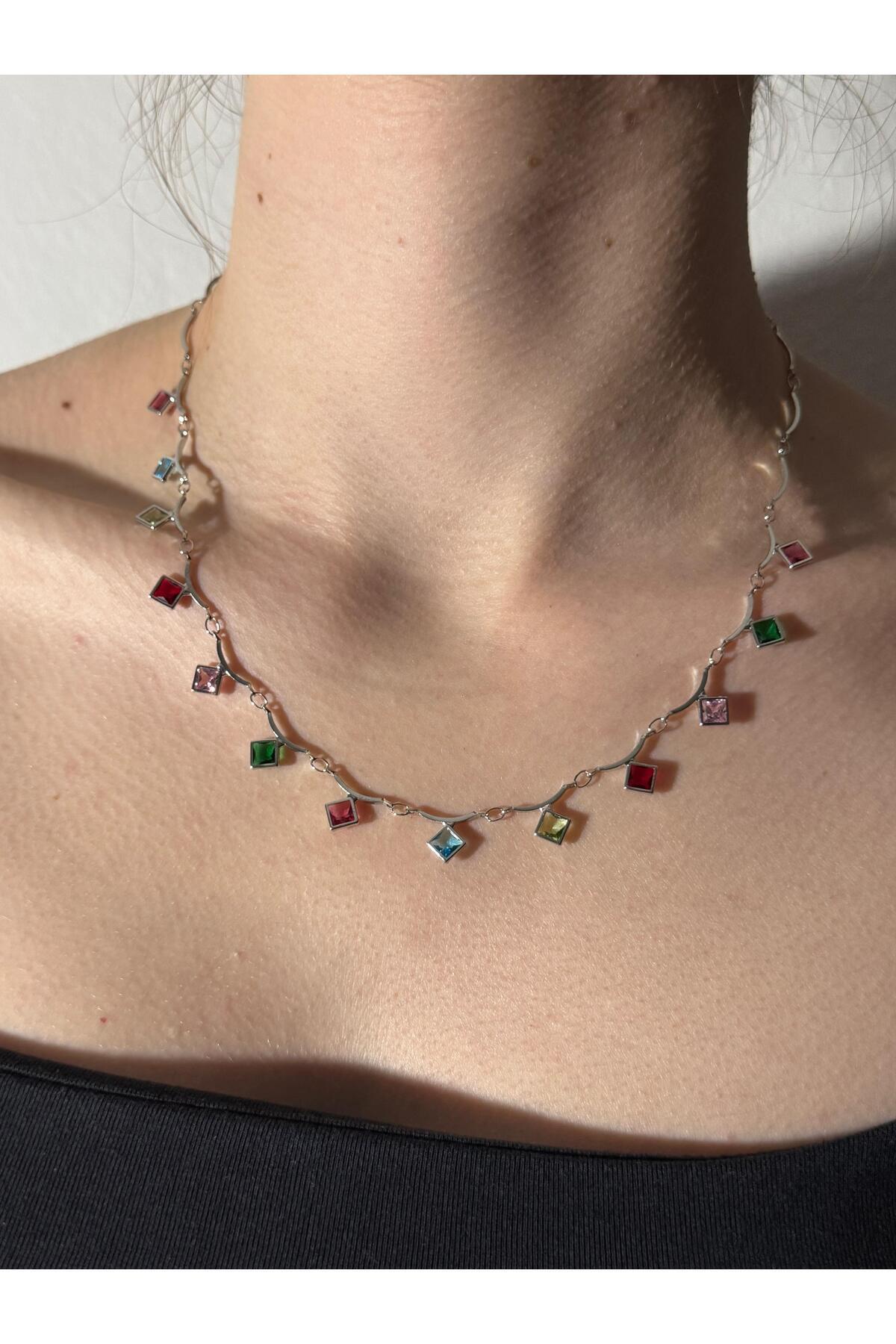 Renkli Kare Taşlı Gümüş Kolye Renkli Kare Taşlı Gümüş Kolye TYCF32003AFCF3DCFED7D0A00 0