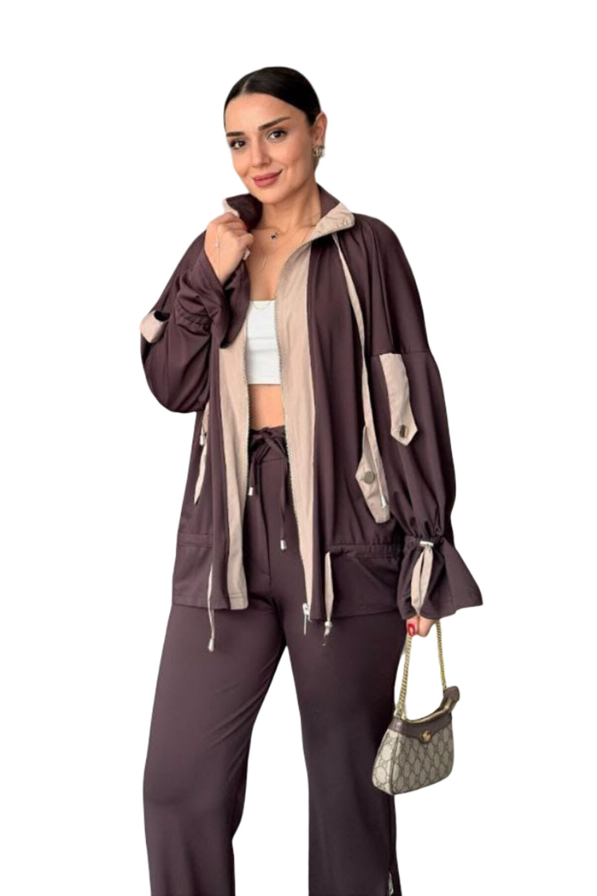 Paraşüt Kumaş Kahve Bej Garnili Cepli Bel Büzgülü Bilek Büzgülü Tasarım Takım Paraşüt Kumaş Kahve Bej Garnili Cepli Bel Büzgülü Bilek Büzgülü Tasarım Takım ABRHM-1037 XL