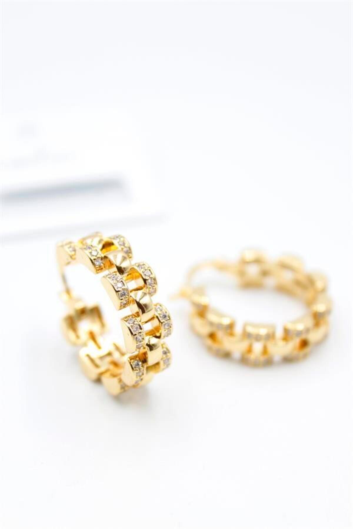 Taşlı Halka Küpe - Altın Taşlı Halka Küpe - Altın RYL-O-9535 تک سایز