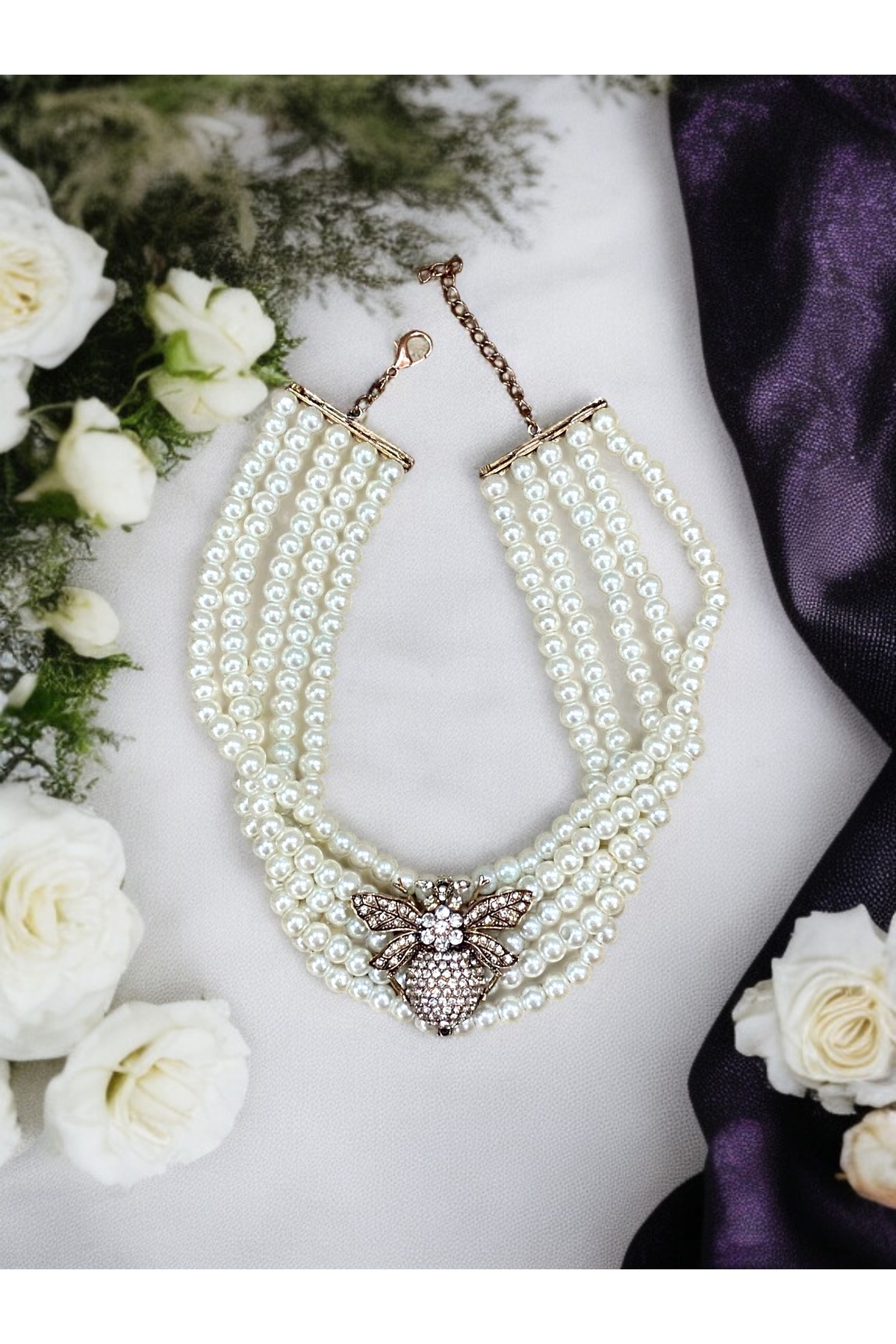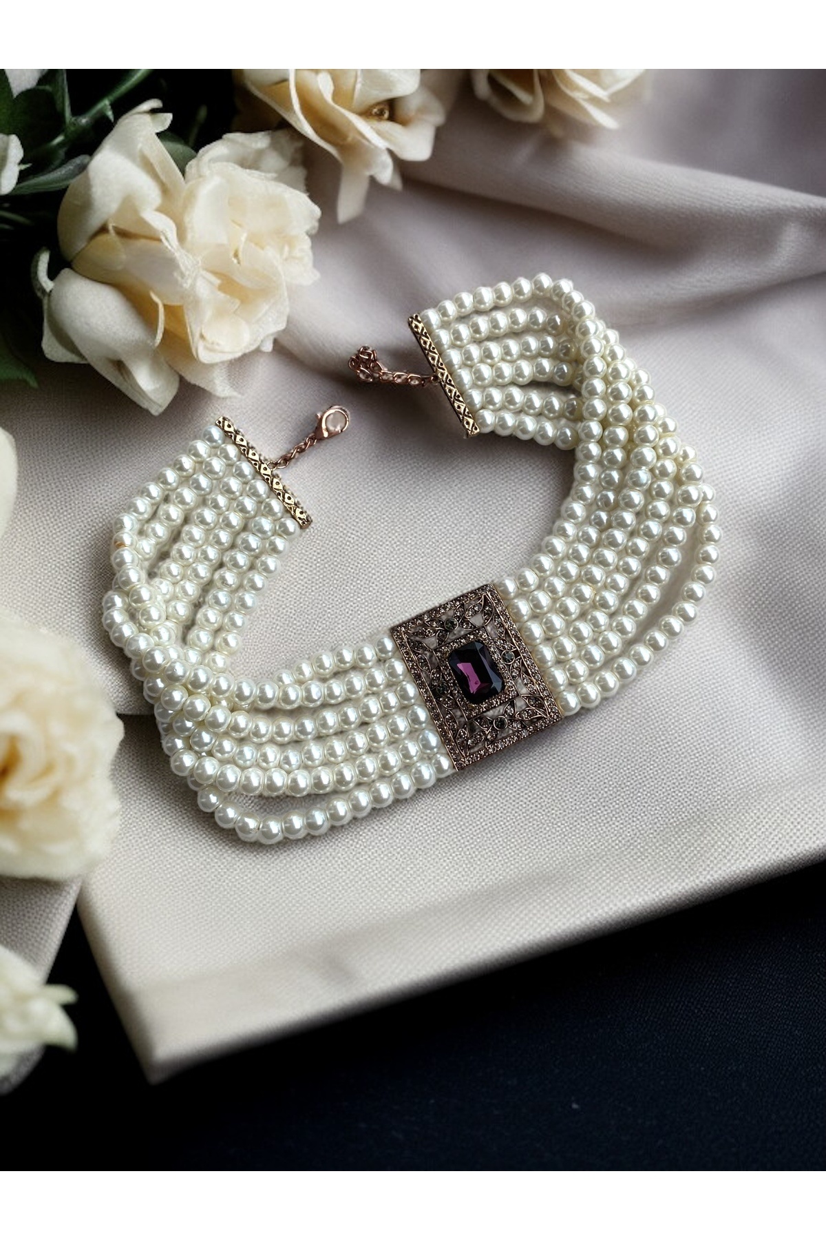 Elmas Montür Kristal Taşlı İnci Tasma Kolye Elmas Montür Kristal Taşlı İnci Tasma Kolye FAYRA-A523NCLT تک سایز