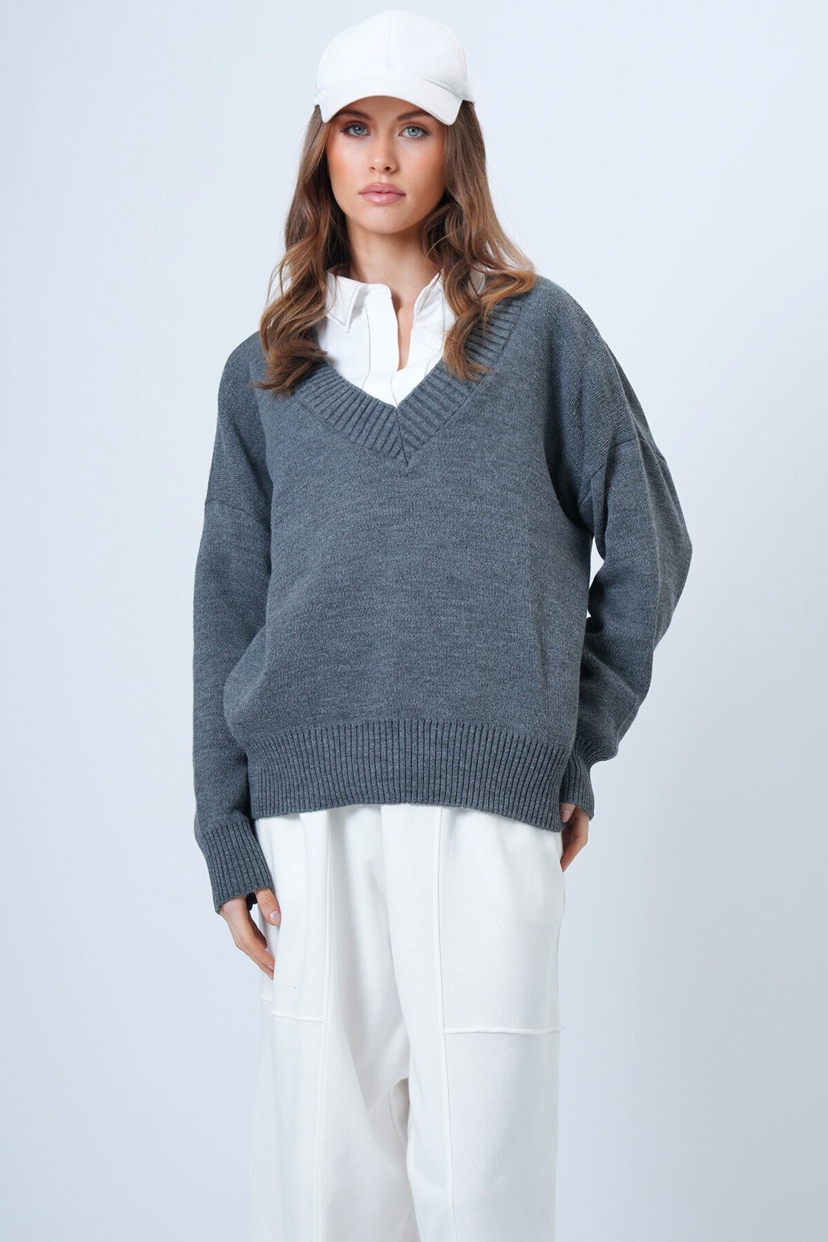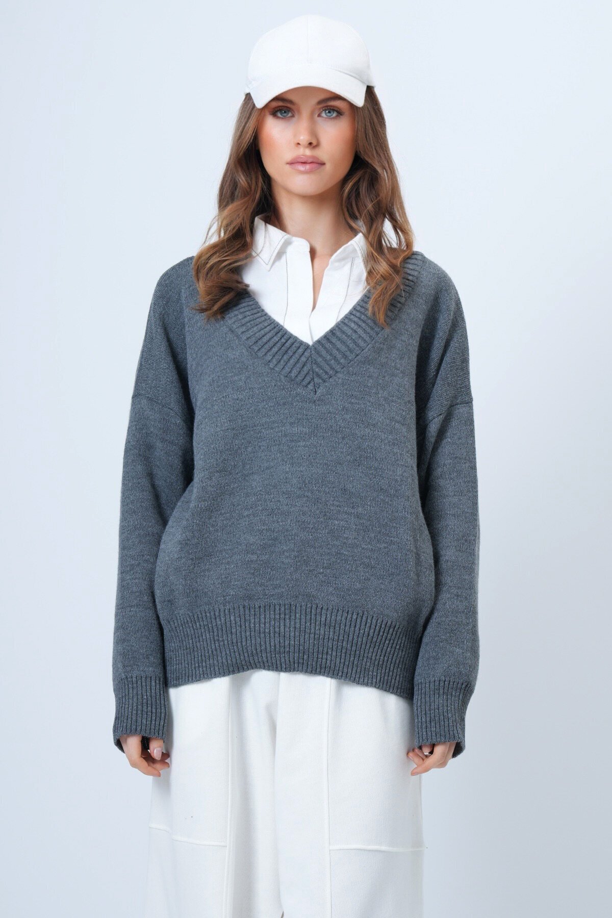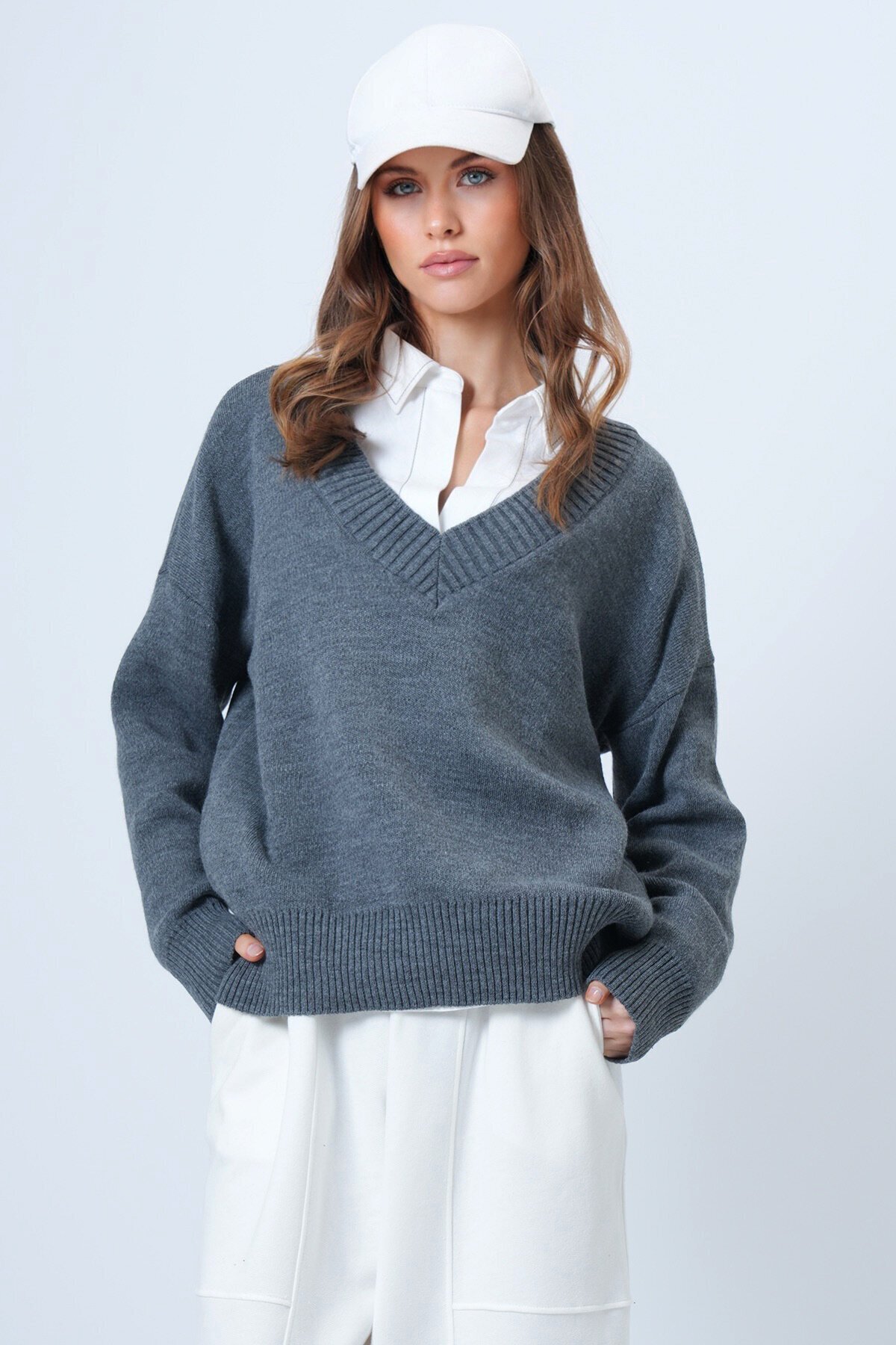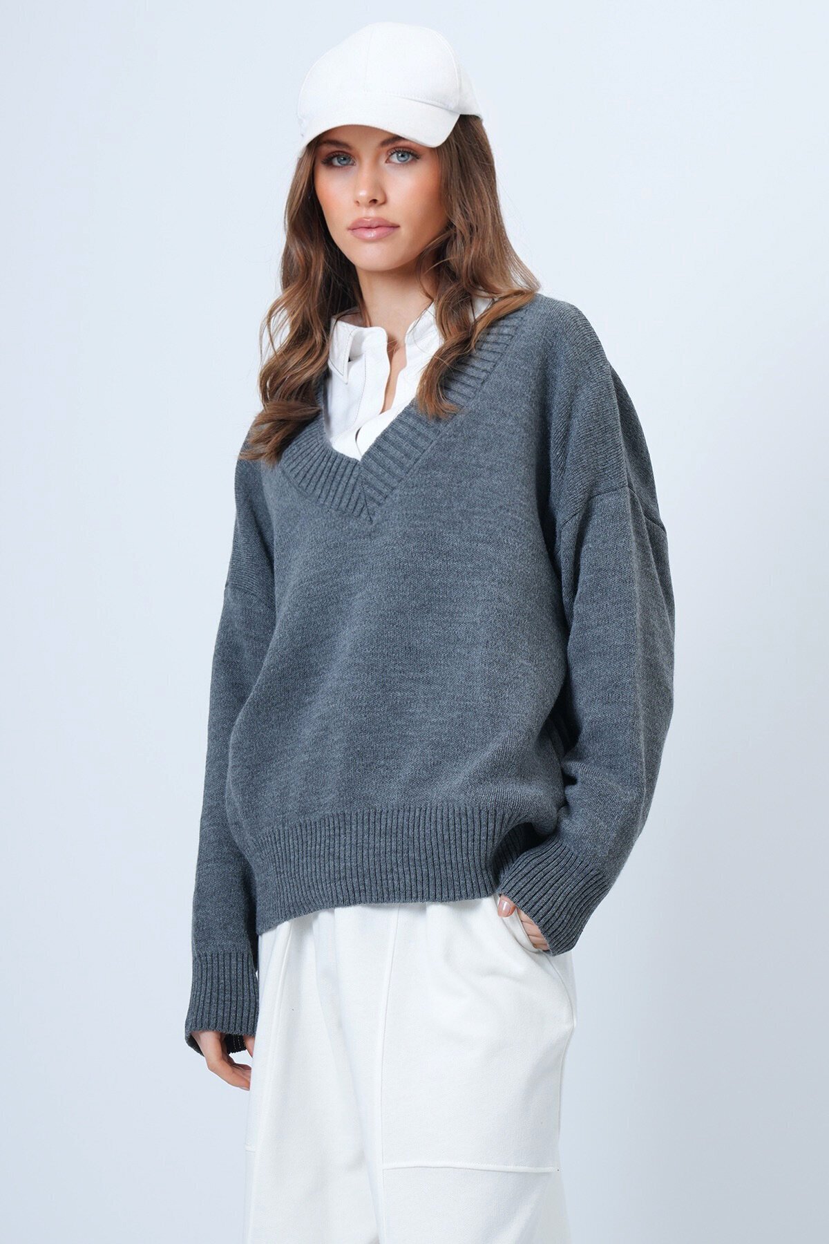 Kadın Antrasit V Yaka Geniş Ribanalı Örgü Uzun Kollu Triko Kazak Vs01323 Kadın Antrasit V Yaka Geniş Ribanalı Örgü Uzun Kollu Triko Kazak Vs01323 VS01323 Standart