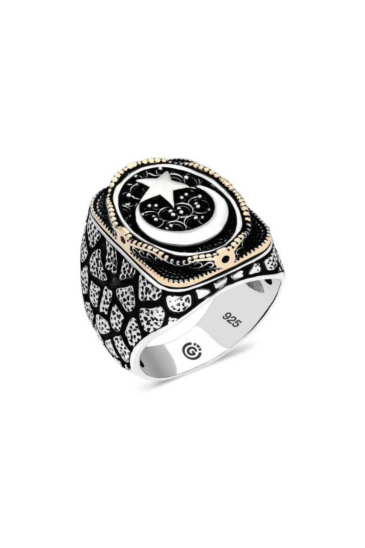 Gümüş Ay Yıldız Erkek Yüzük Gümüş Ay Yıldız Erkek Yüzük VGDMR11003515 تک سایز