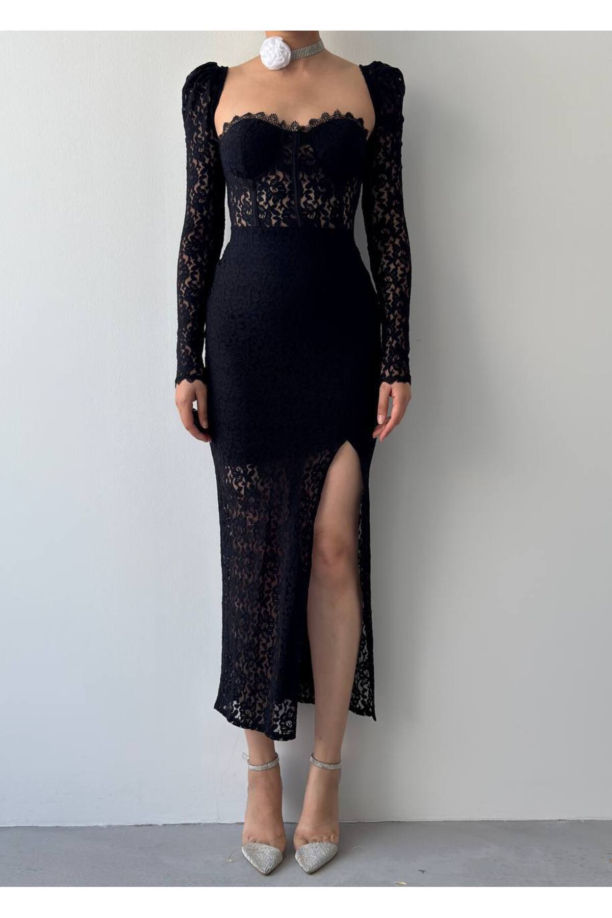 Dantel Tasarım Gloplu İris Midi Elbise Dantel Tasarım Gloplu İris Midi Elbise GUL0067 L