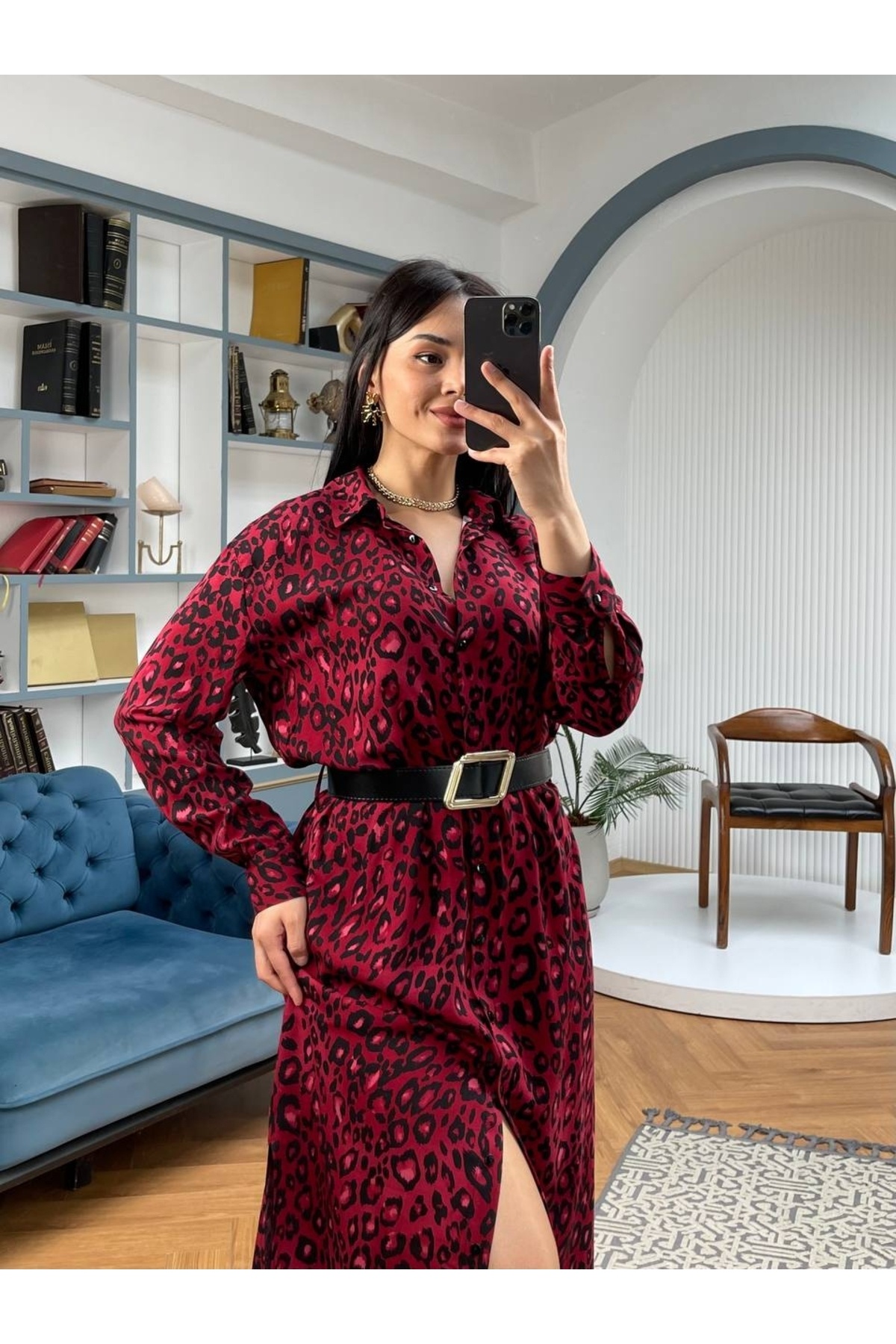 LEOPAR DESENLİ GÖMLEK ELBİSE LEOPAR DESENLİ GÖMLEK ELBİSE GRS3034 XL