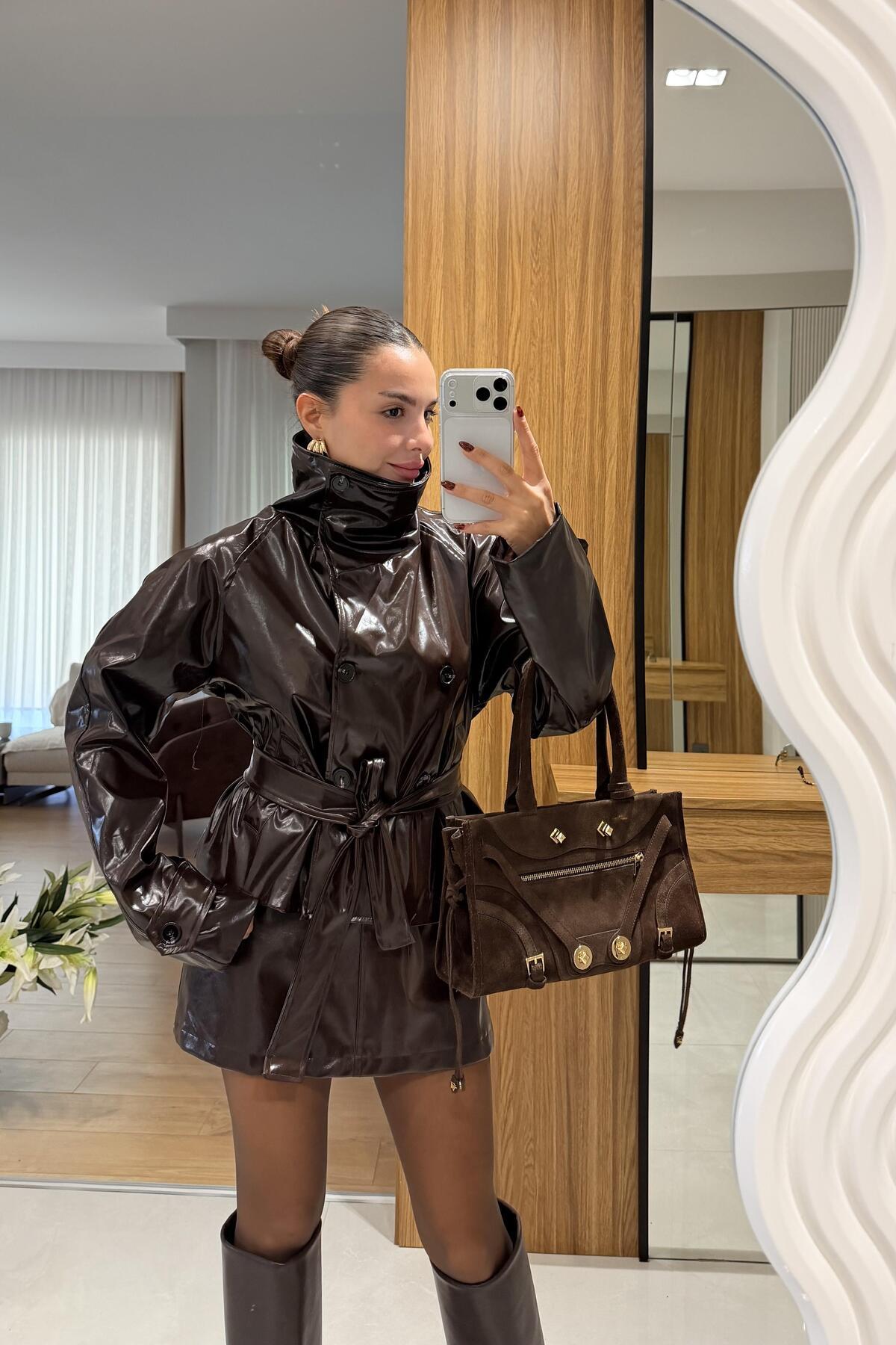 Cepli Uzun Deri Ceket 0614 Kahve Cepli Uzun Deri Ceket 0614 Kahve W25W-FLW-00036 L