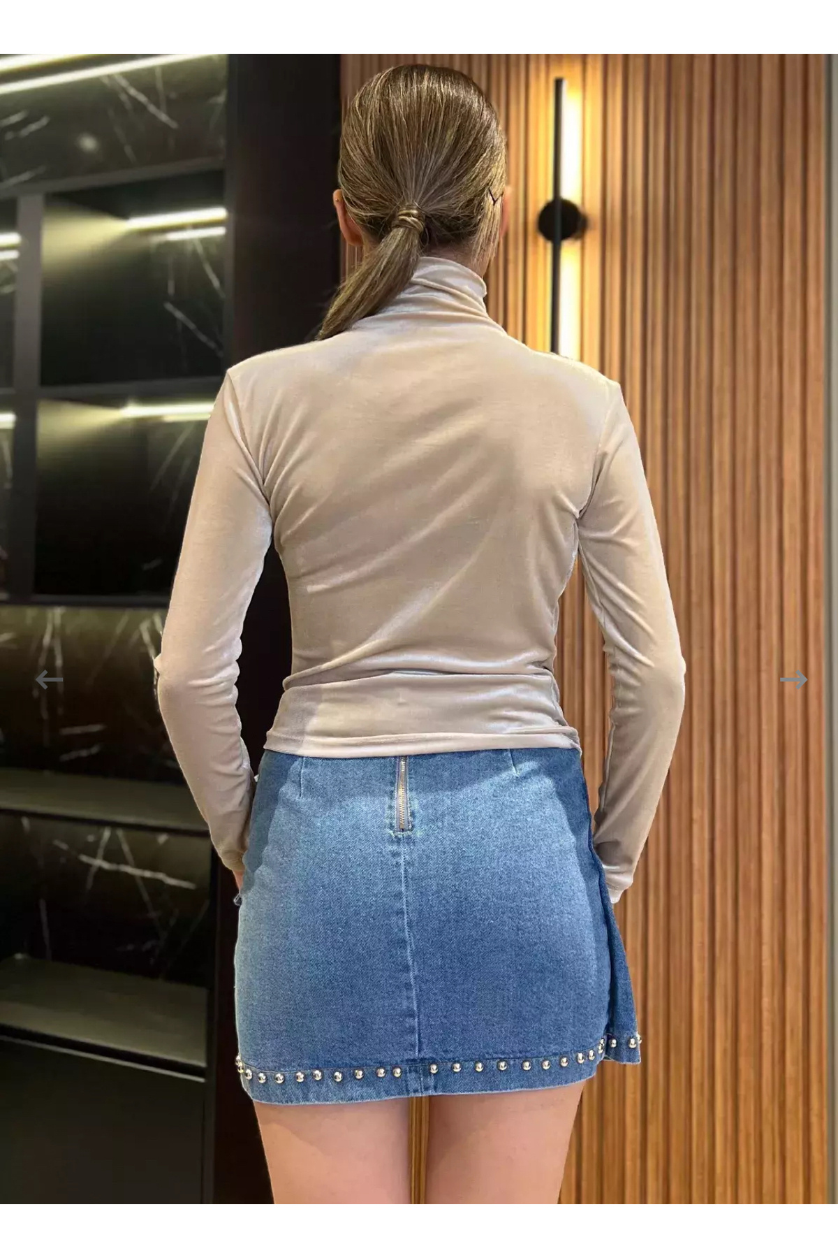 KADIN yandan ve omuzdan büzgülü esnek kadife kumaş bluz KADIN yandan ve omuzdan büzgülü esnek kadife kumaş bluz kd dy Standart