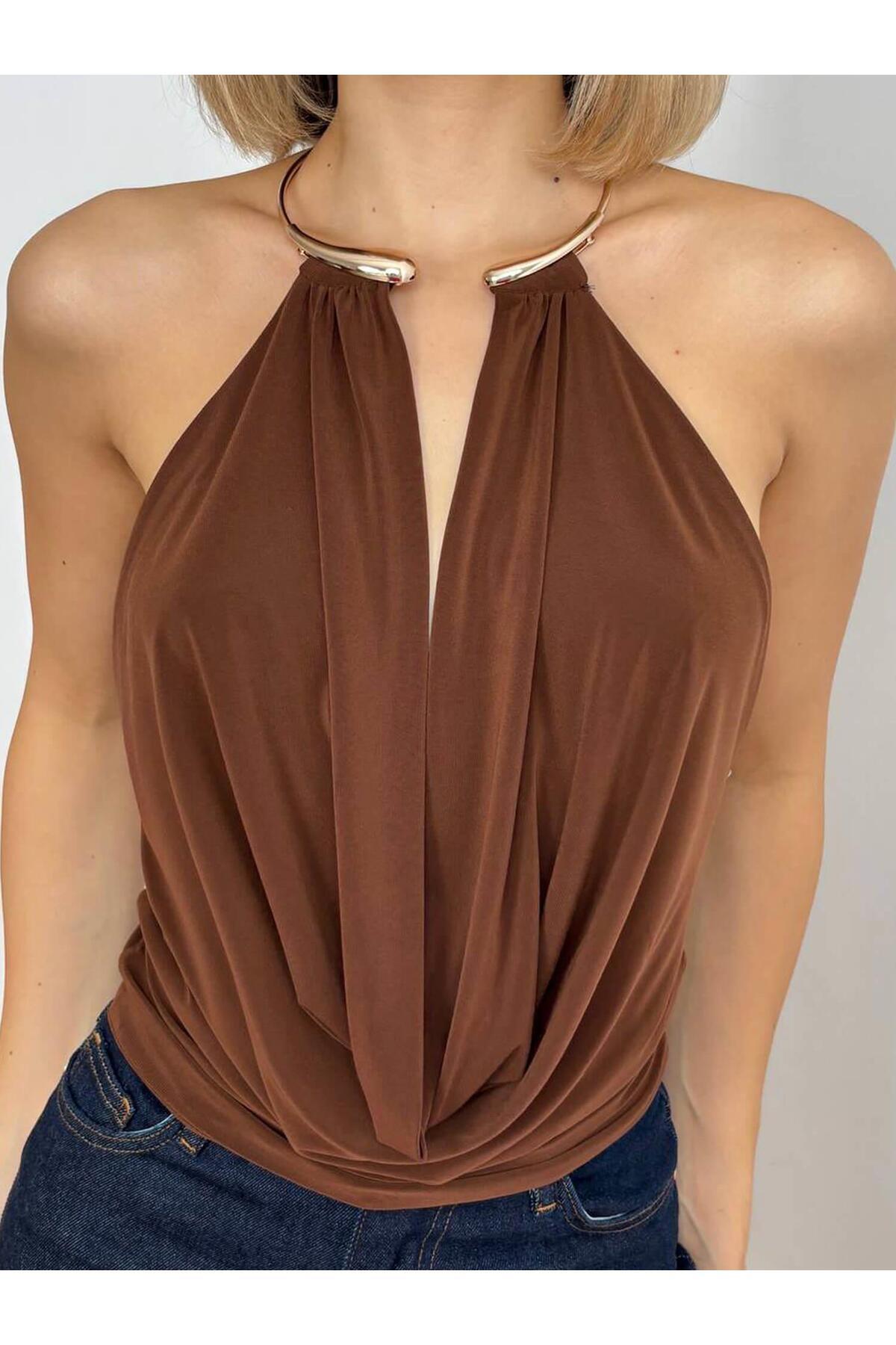 Boyundan Halka Askılı Bluz 20063 Kahve Boyundan Halka Askılı Bluz 20063 Kahve W25W-MCX-00018 L