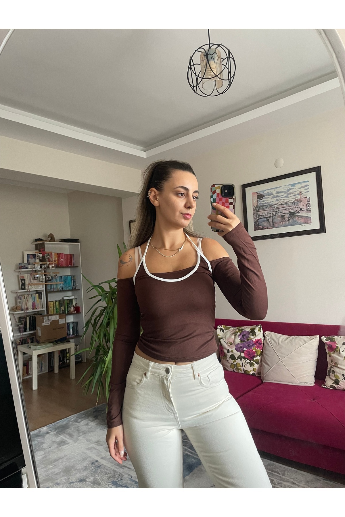 KADIN uzun kollu Halter Biyeli Crop KADIN uzun kollu Halter Biyeli Crop HL1987 L