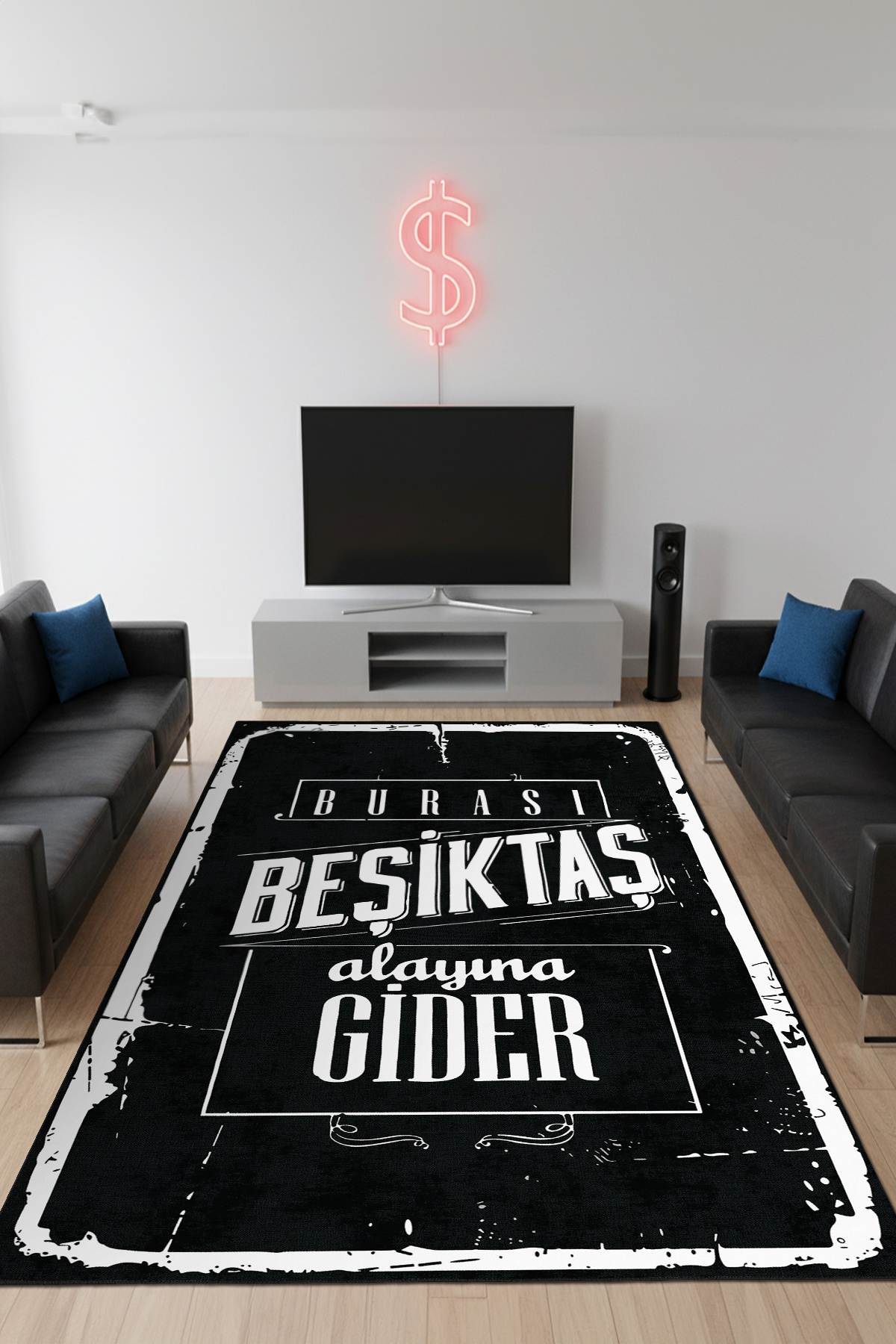 Siyah Beyaz Taraftar Dijital Baskılı Makinede Yıkanabilir Kaymaz Leke Tutmaz Çocuk Odası Halısı Siyah Beyaz Taraftar Dijital Baskılı Makinede Yıkanabilir Kaymaz Leke Tutmaz Çocuk Odası Halısı DPÇ0201 160 x 230