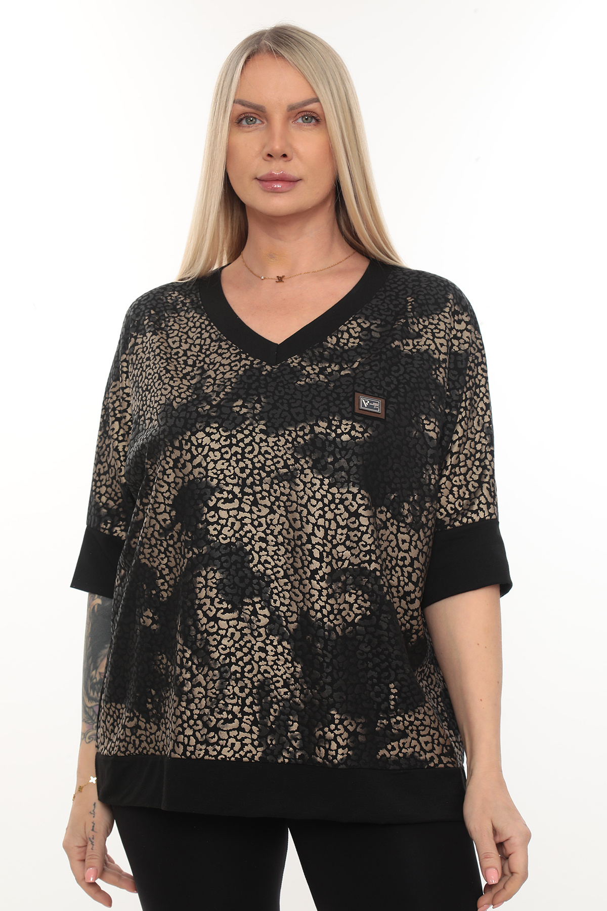 Kadın V Yaka Önü Şerit Taş Baskılı Fitilli Büyük Beden Soğuk İplik Triko Bluz Kadın V Yaka Önü Şerit Taş Baskılı Fitilli Büyük Beden Soğuk İplik Triko Bluz S-26K1800054 3XL