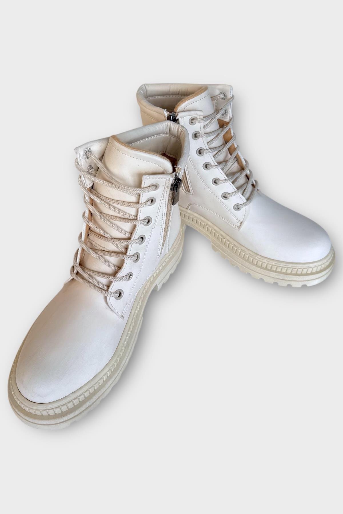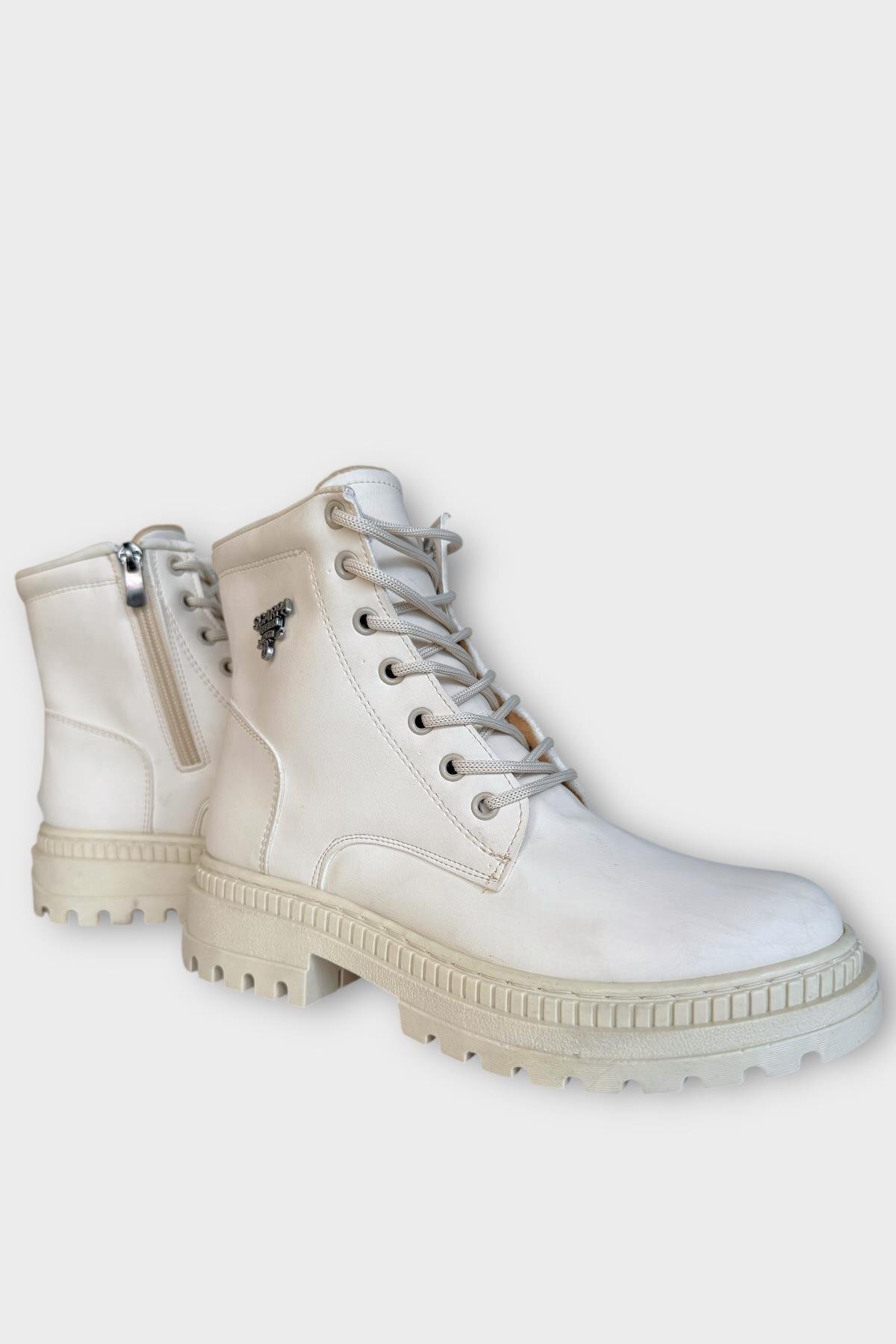 Kalın Taban Bağcıklı Fermuarlı Kadın Bot KREM Kalın Taban Bağcıklı Fermuarlı Kadın Bot KREM 7642 40